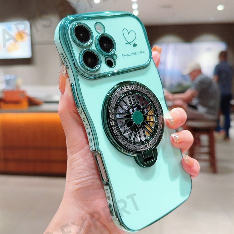 For iPhone 16 Pro Case Electroplating Gyro Design Kickstand Soft TPU Phone Cover - Green