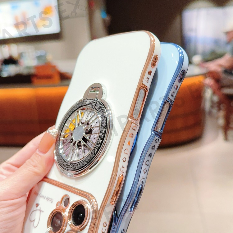 For iPhone 16 Pro Case Electroplating Gyro Design Kickstand Soft TPU Phone Cover - Ivory White