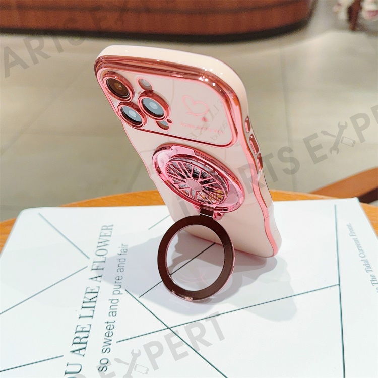 For iPhone 16 Pro Case Electroplating Gyro Design Kickstand Soft TPU Phone Cover - Pink