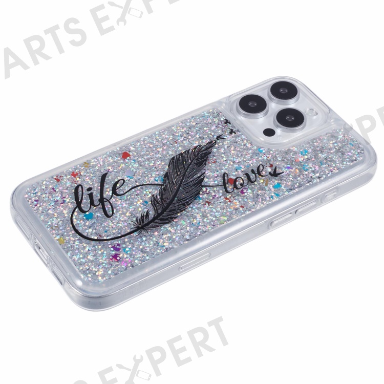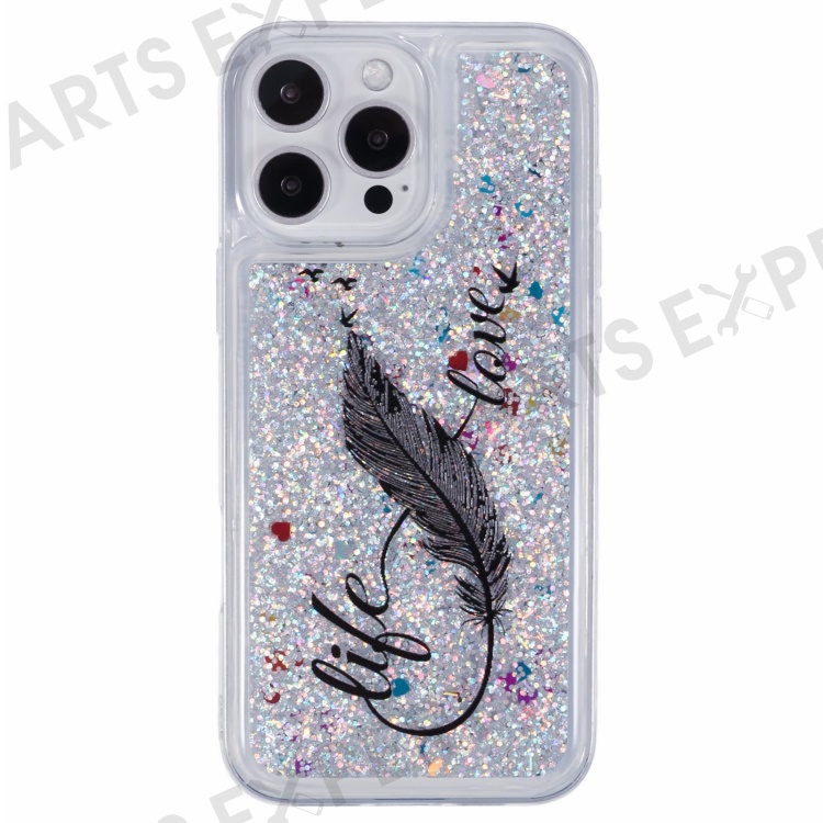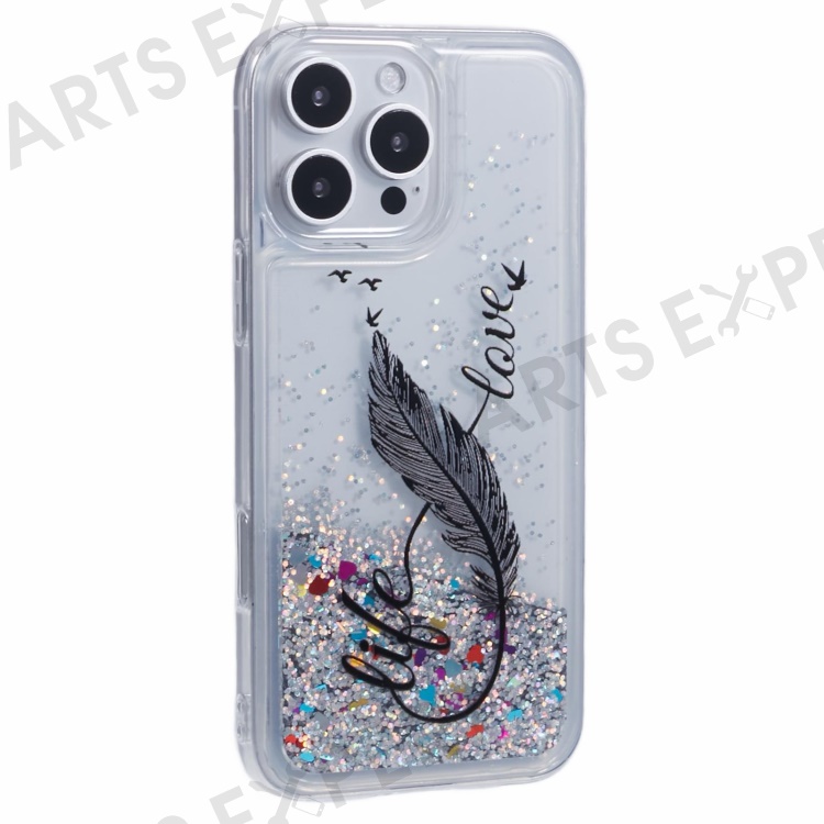 For iPhone 16 Pro Case Floating Quicksand Pattern Soft TPU Back Cover - Feather
