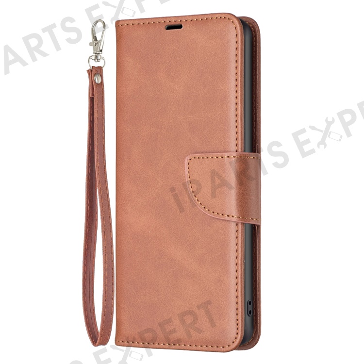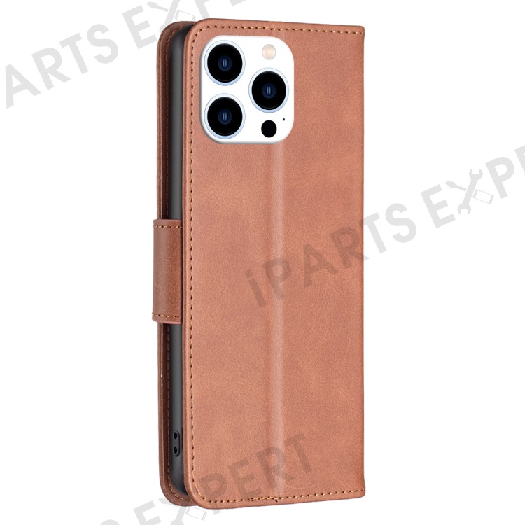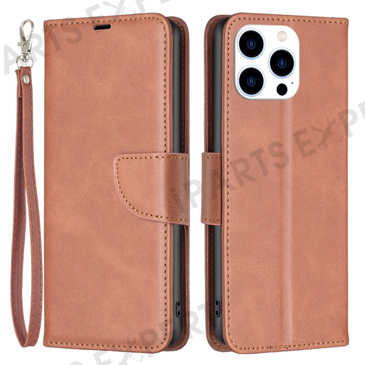 For iPhone 16 Pro Case Folding Stand Anti-Fall Leather Mobile Phone Cover with Hand Strap - Brown