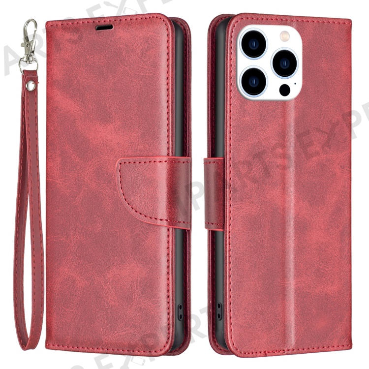 For iPhone 16 Pro Case Folding Stand Anti-Fall Leather Mobile Phone Cover with Hand Strap - Red