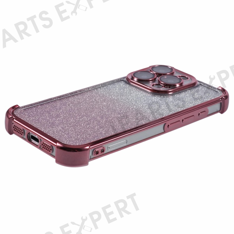 For iPhone 16 Pro Case Glitter TPU Phone Cover Reinforced Corners - Pink