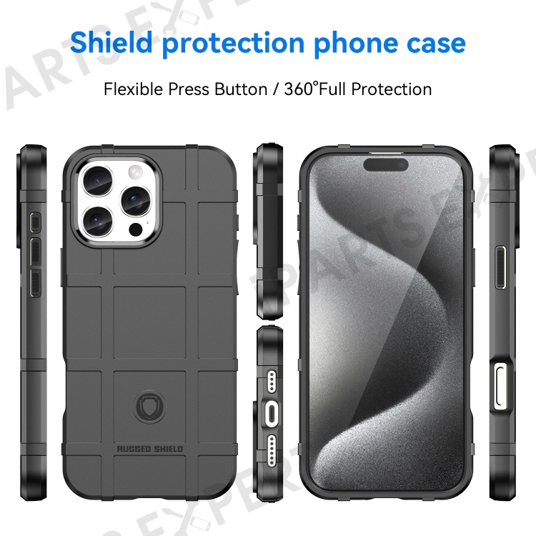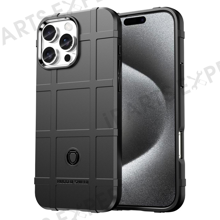 For iPhone 16 Pro Case Grid Design Soft TPU Scratch-Proof Phone Cover - Black