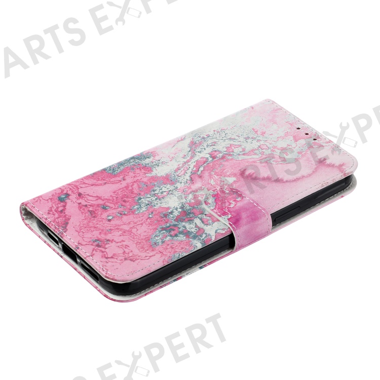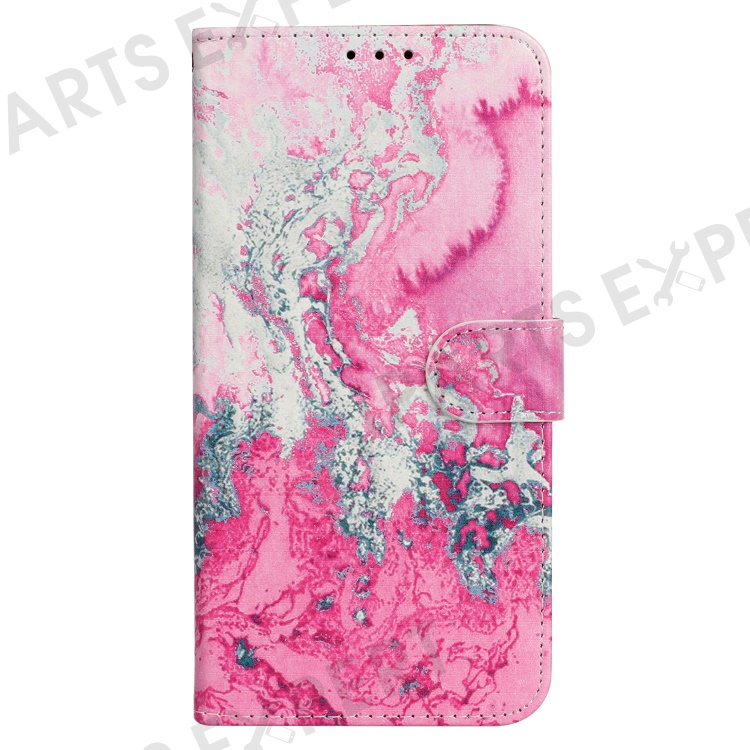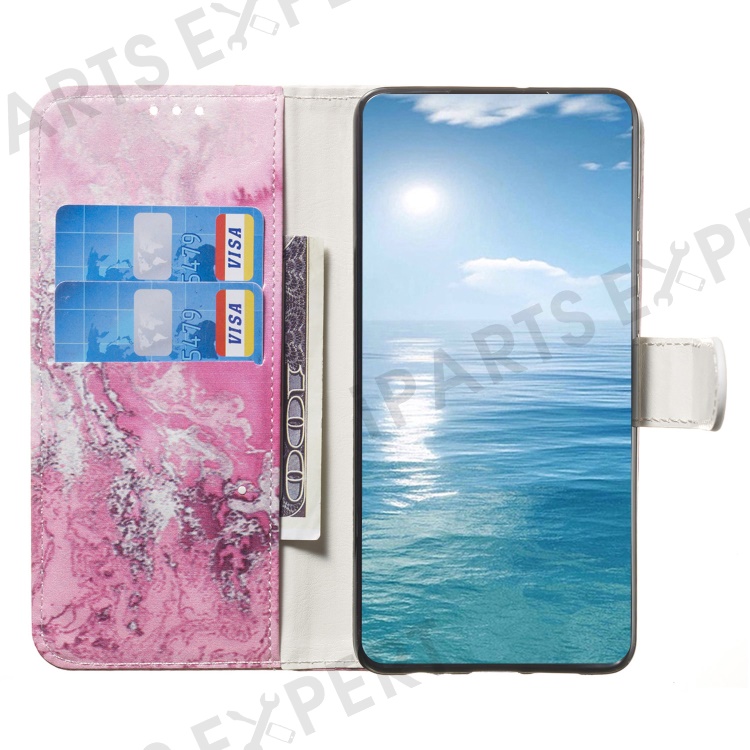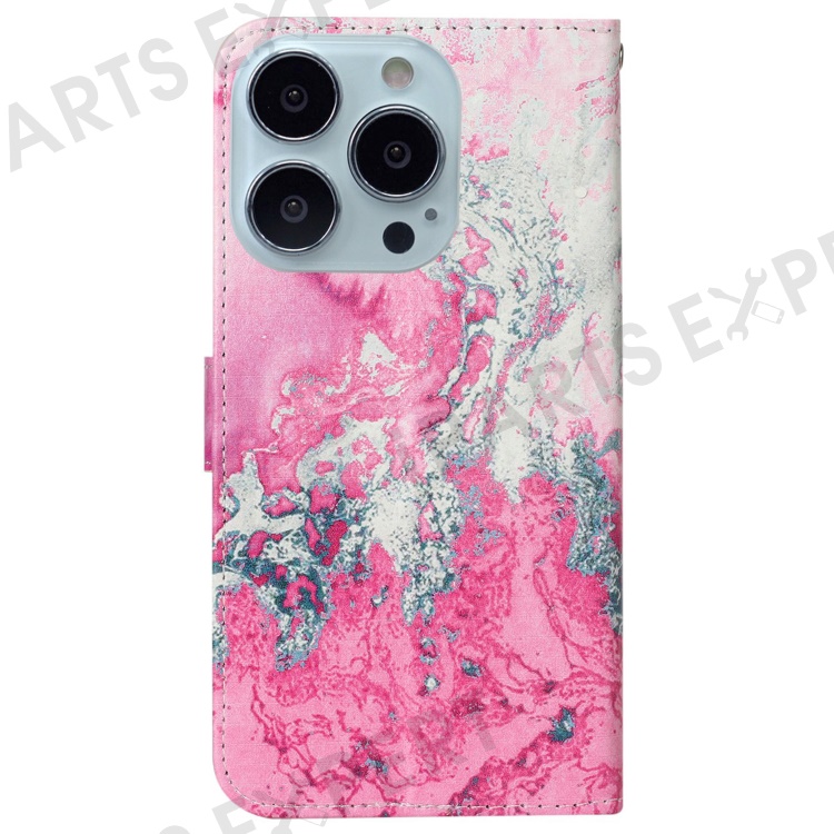 For iPhone 16 Pro Case Pattern Leather Phone Cover with Card Slots Holder - Pink Seawater Marble