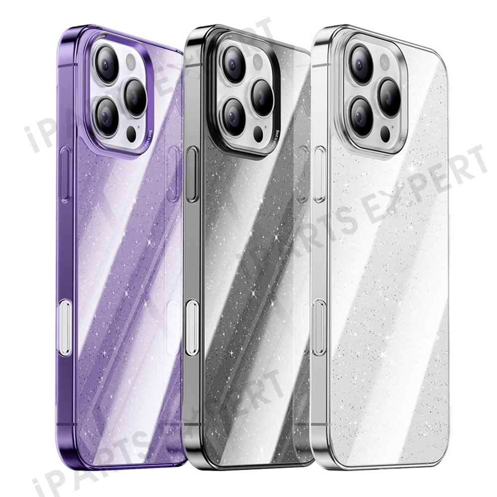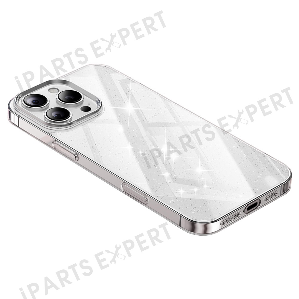 For iPhone 16 Pro Case PC + Glitter Glass Protective Phone Cover - Transparent