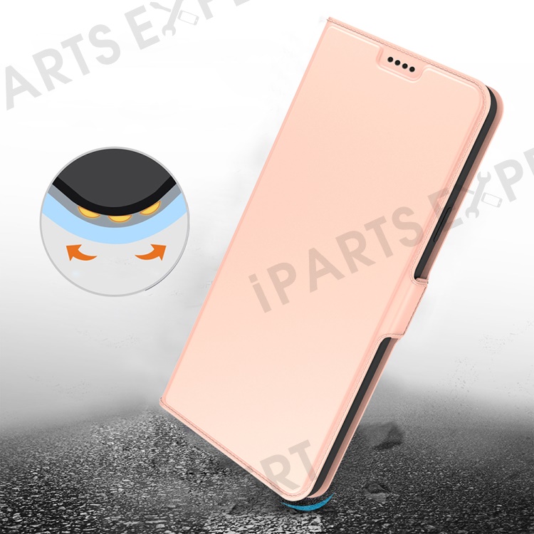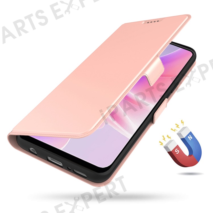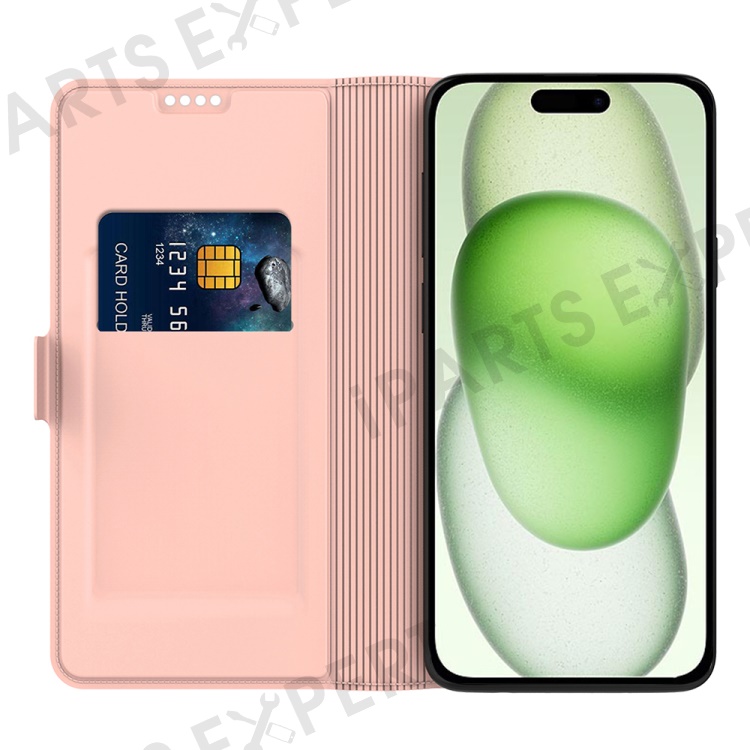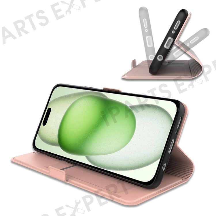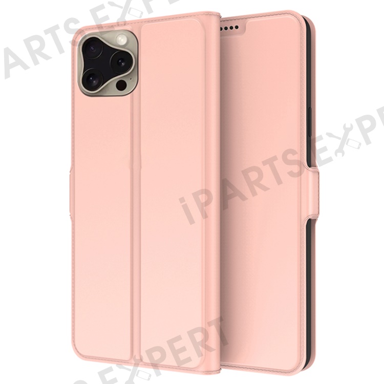 For iPhone 16 Pro Case PU Leather Phone Cover Card Slot Stand Magnetic Clasp - Rose Gold