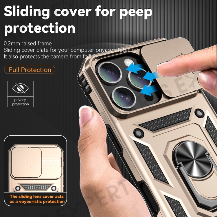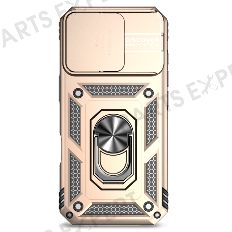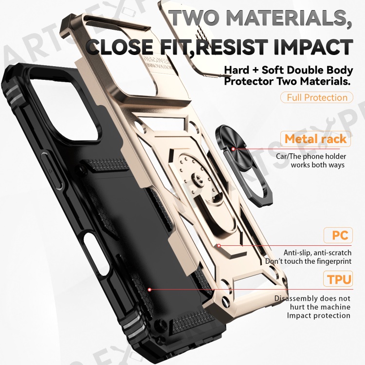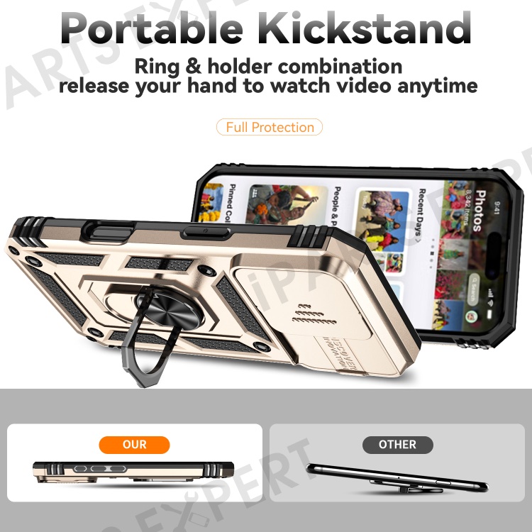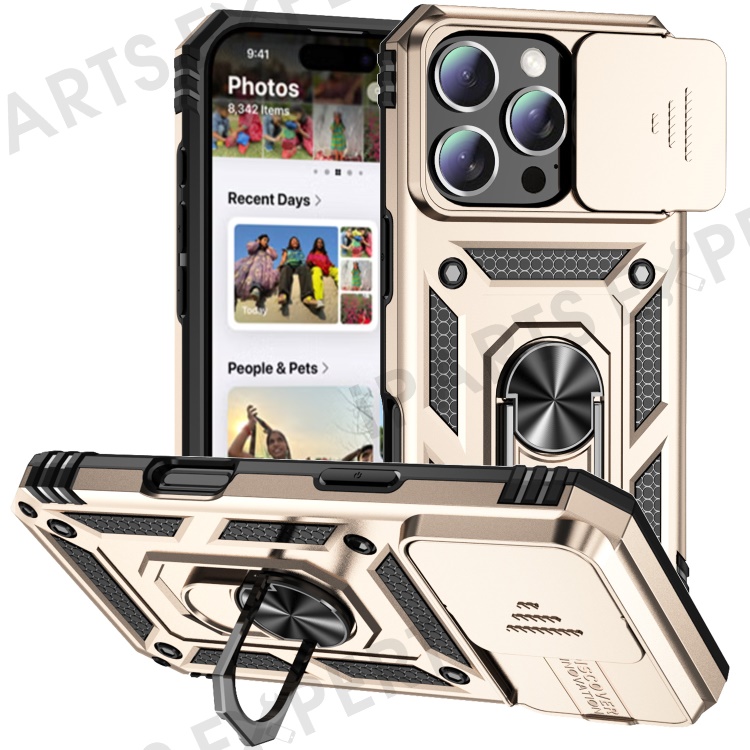 For iPhone 16 Pro Case Ring Kickstand PC+TPU Phone Cover with Camshield - Gold
