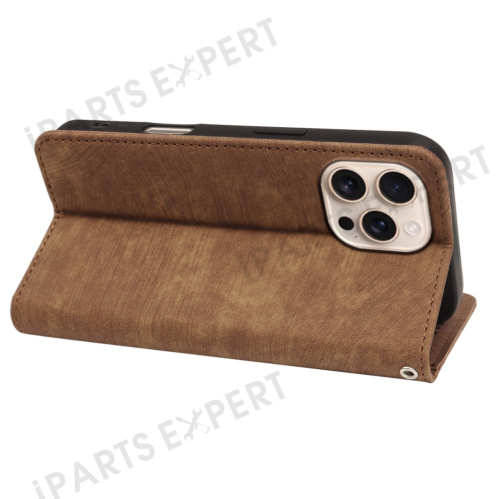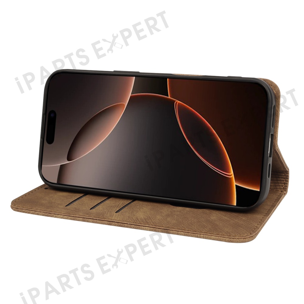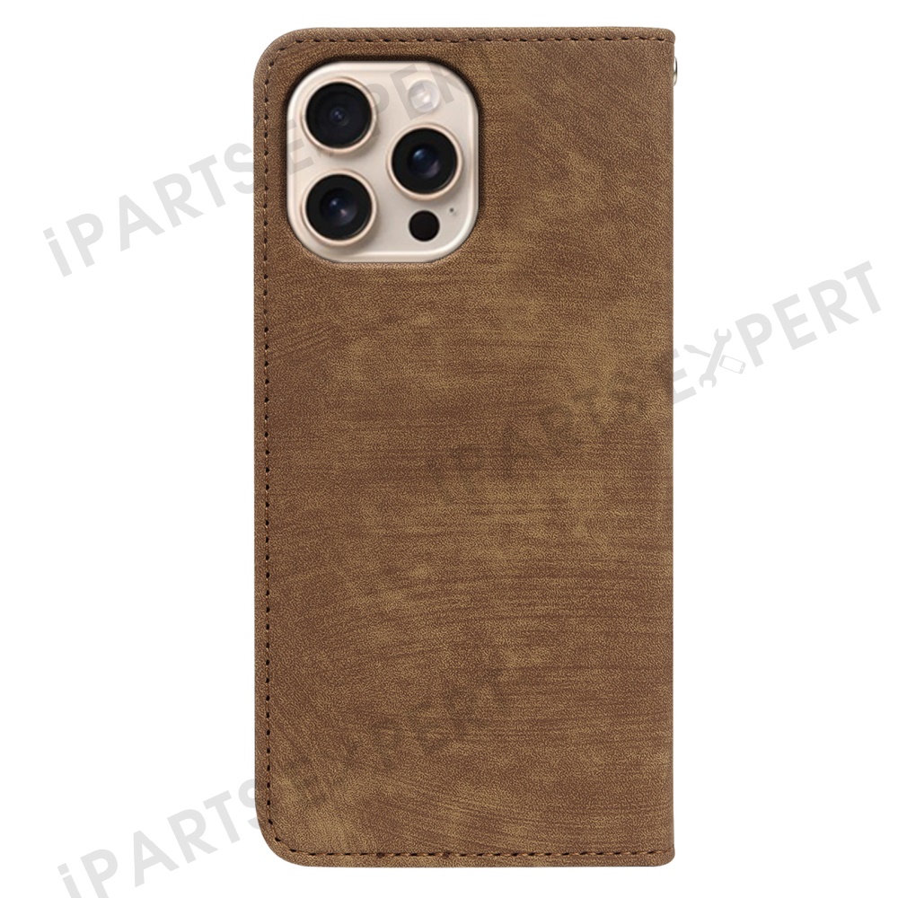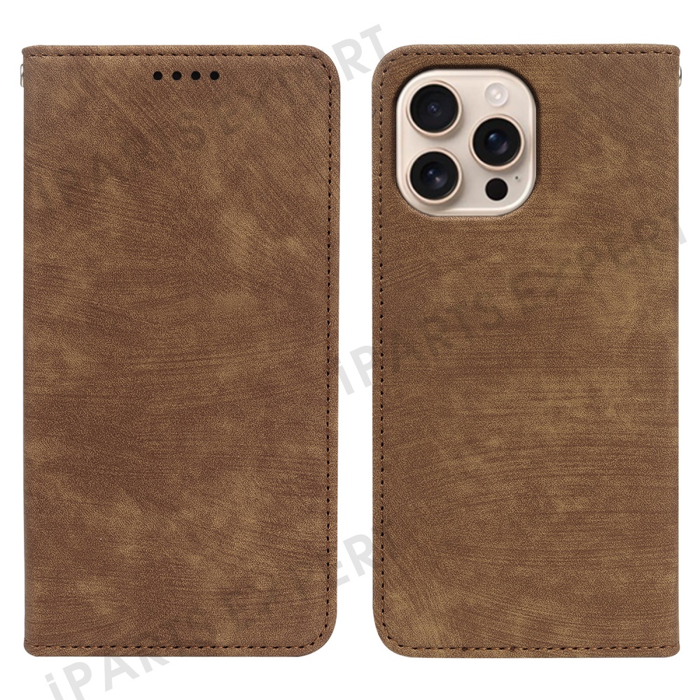 For iPhone 16 Pro Case Strong Magnetic Leather Wallet Phone Cover with Striped Texture - Brown
