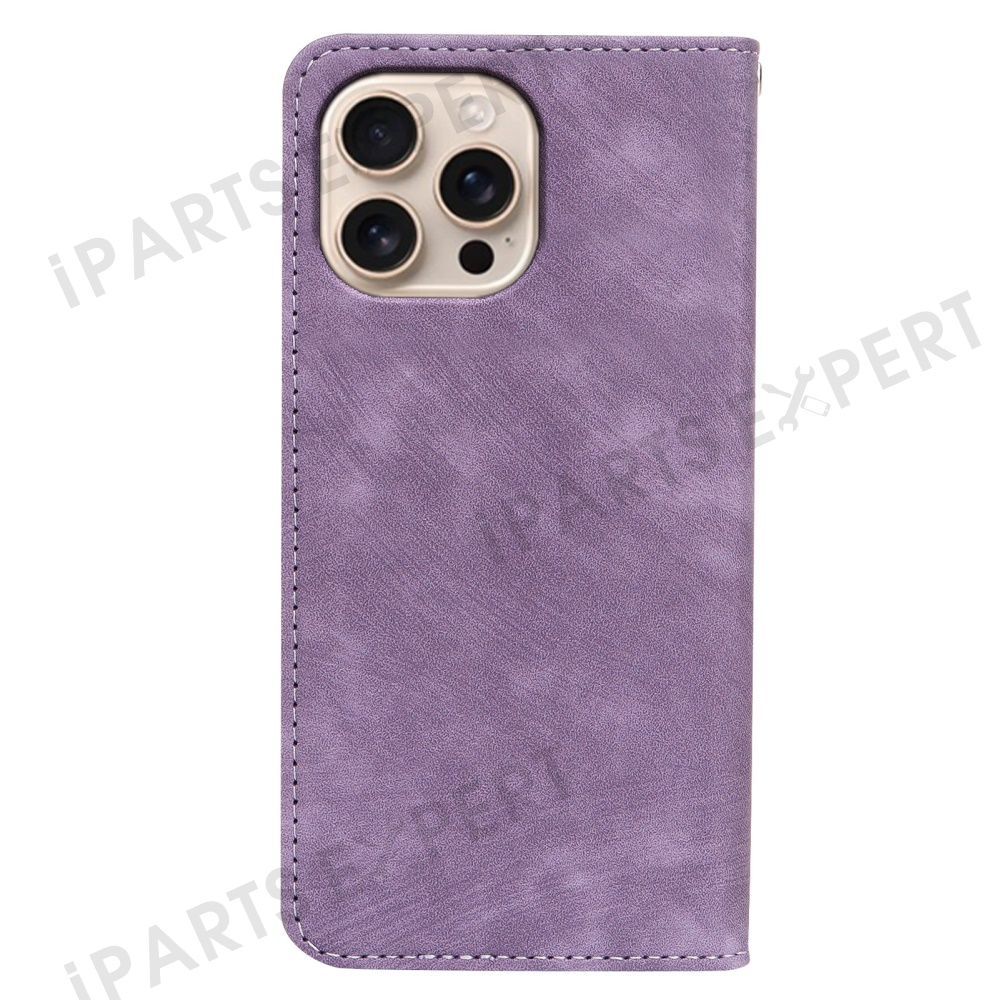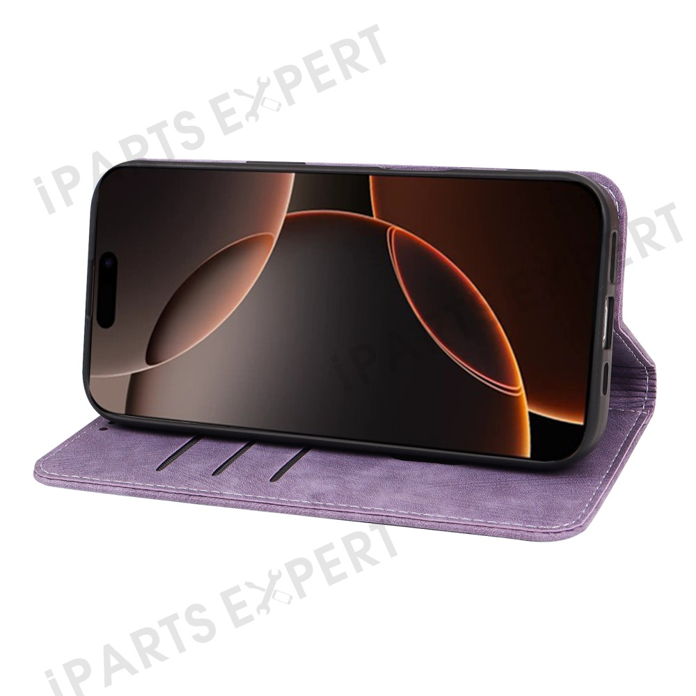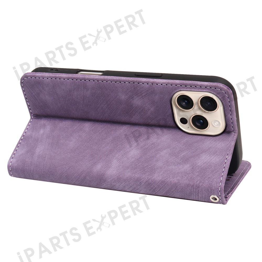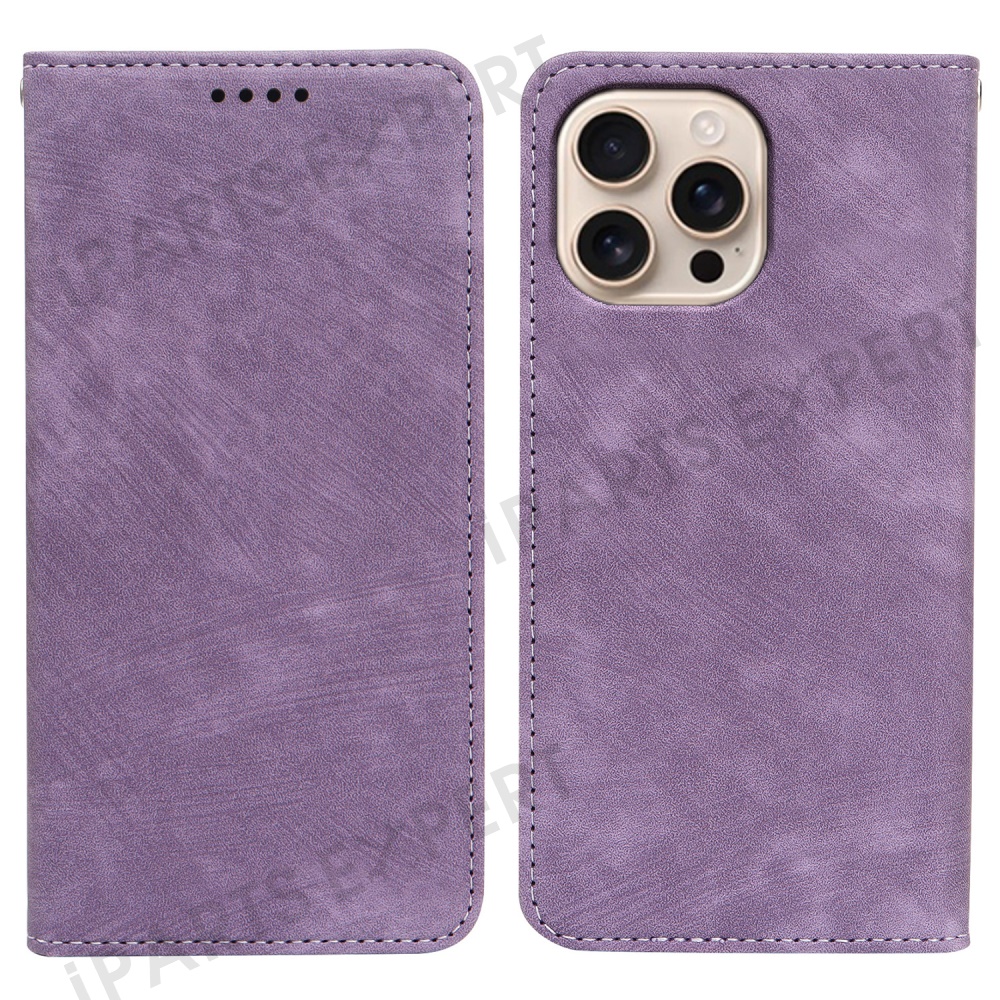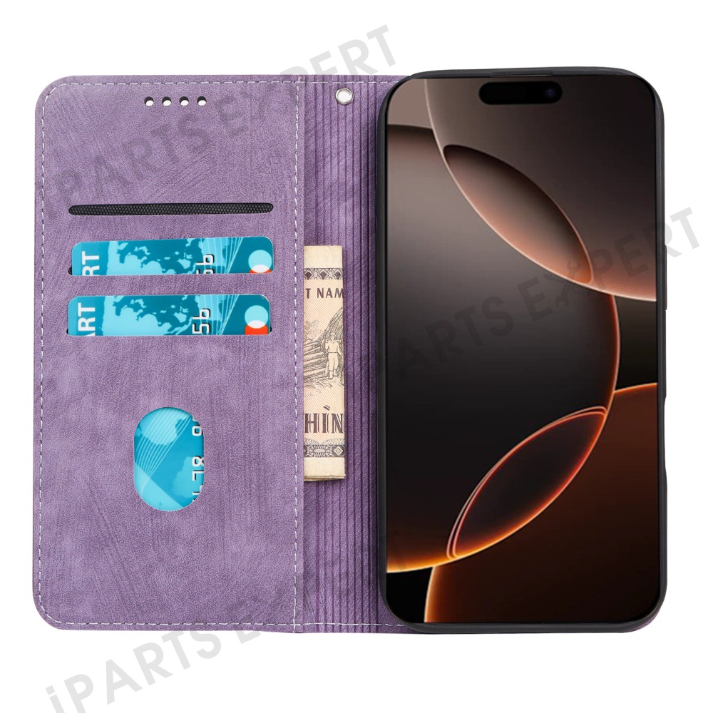 For iPhone 16 Pro Case Strong Magnetic Leather Wallet Phone Cover with Striped Texture - Purple