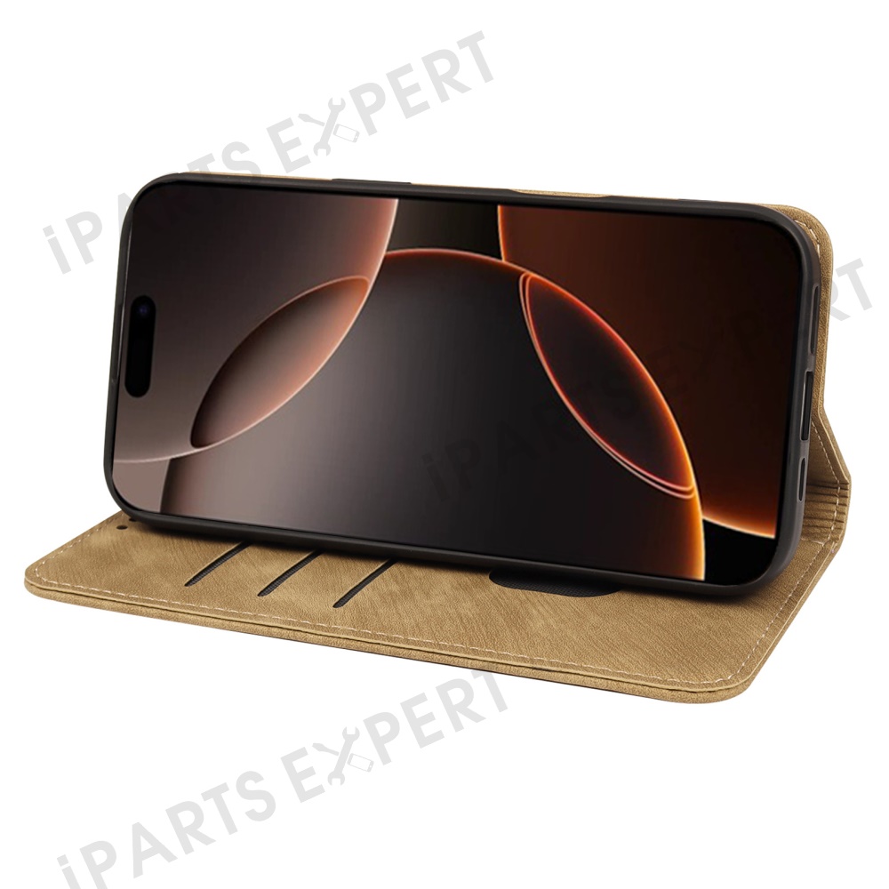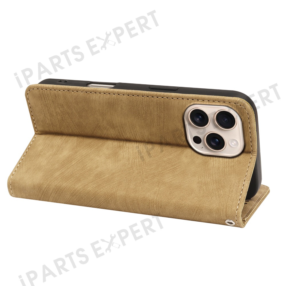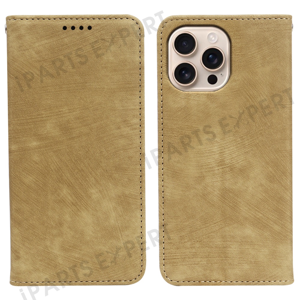 For iPhone 16 Pro Case Strong Magnetic Leather Wallet Phone Cover with Striped Texture - Yellow