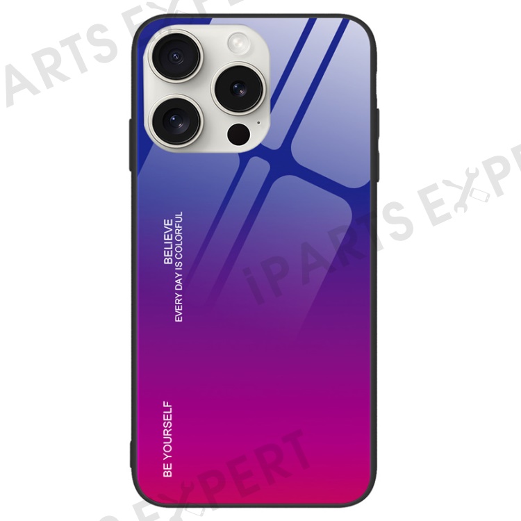 For iPhone 16 Pro Case Tempered Glass+TPU Gradient Color Phone Shell - Blue / Rose