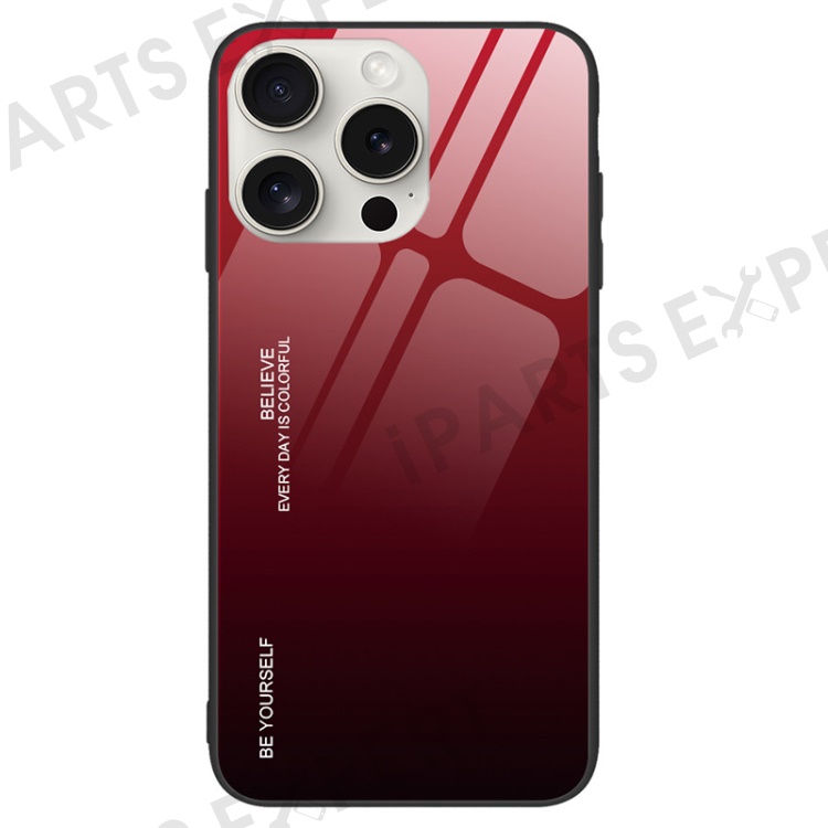 For iPhone 16 Pro Case Tempered Glass+TPU Gradient Color Phone Shell - Red / Black