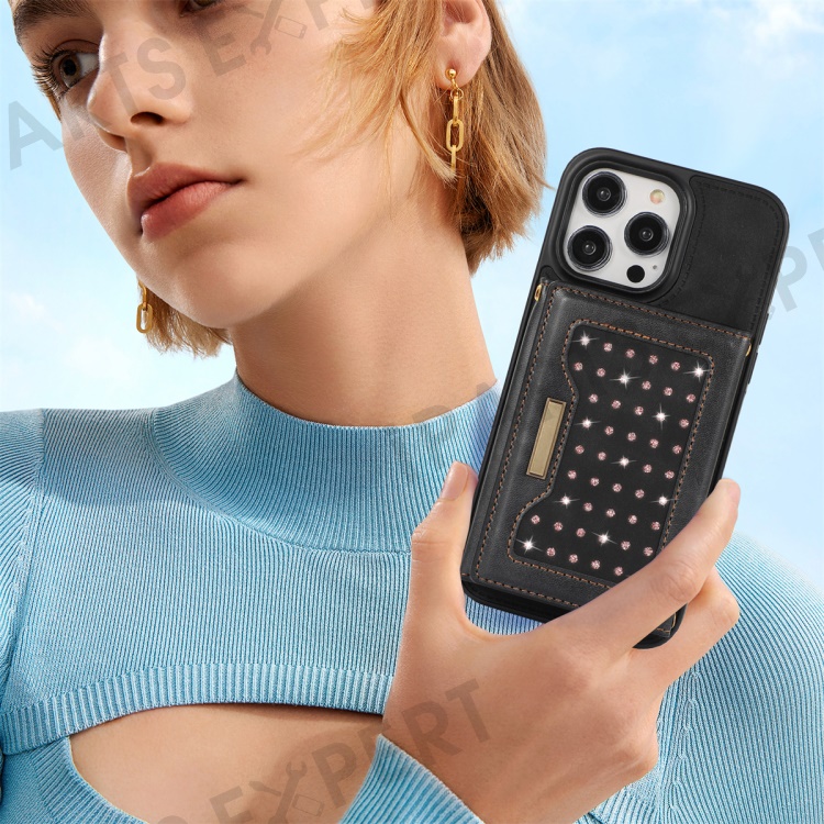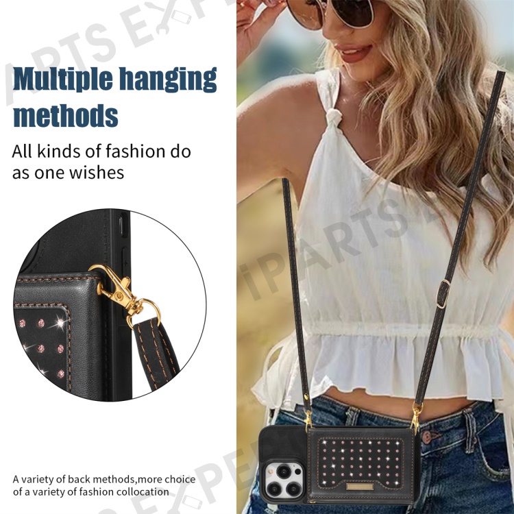 - Stylish Wallet Design: Featuring a wallet design decorated with rhinestones, it includes multiple card slots for easy carrying of cash, ID, or bank cards, providing convenience and style