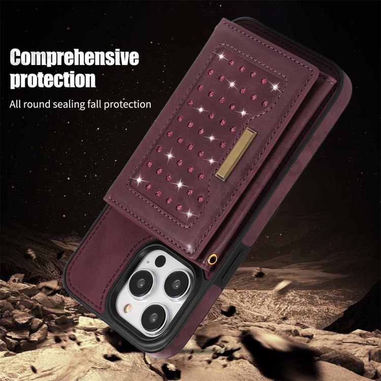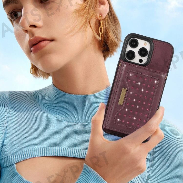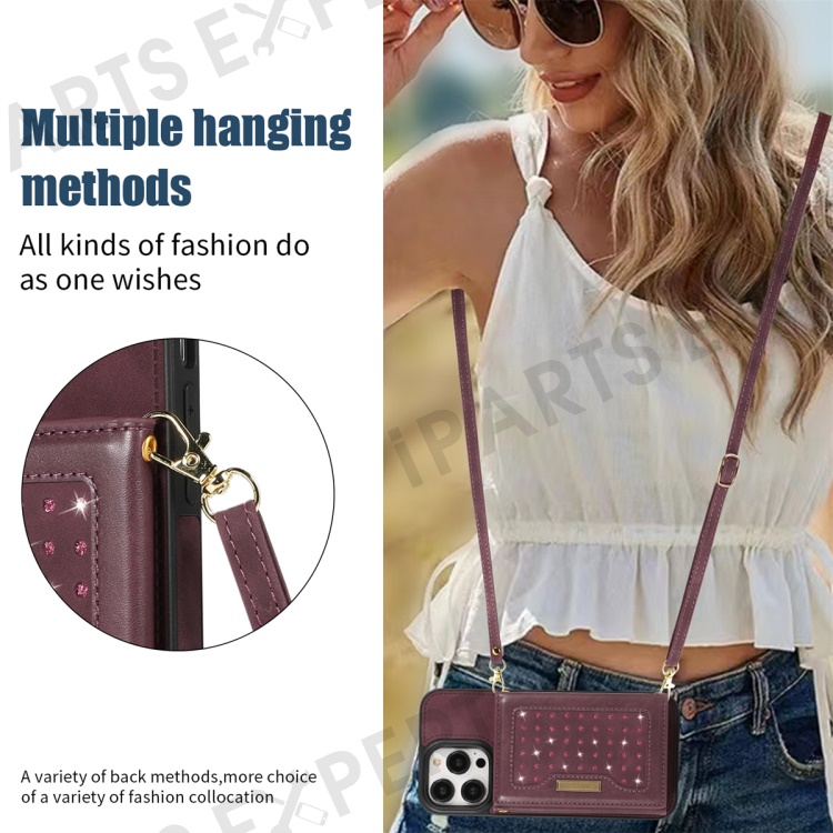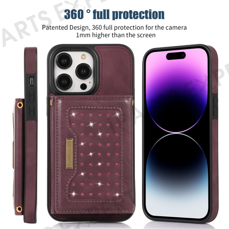 - Stylish Wallet Design: Featuring a wallet design decorated with rhinestones, it includes multiple card slots for easy carrying of cash, ID, or bank cards, providing convenience and style