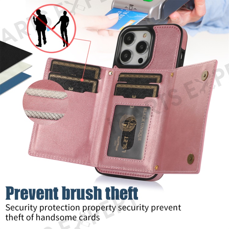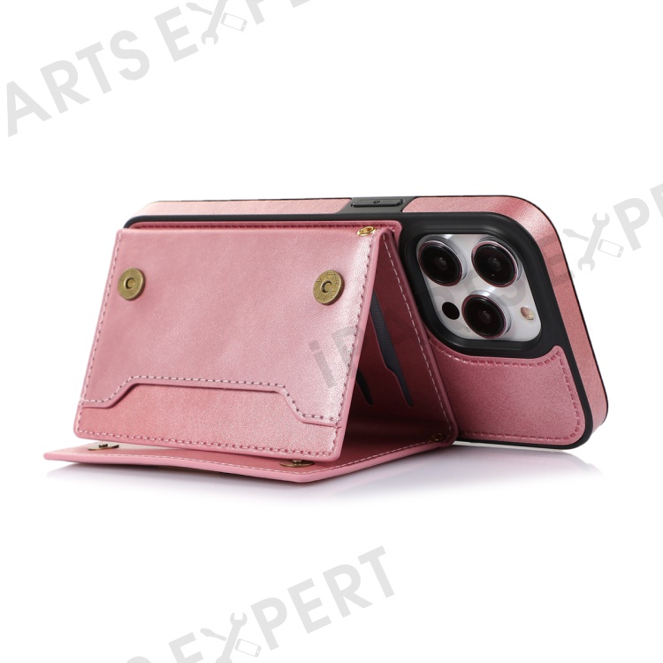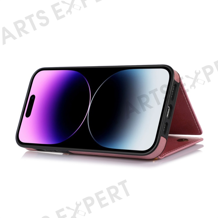 For iPhone 16 Pro Case Wallet RFID Blocking TPU Leather Phone Cover with Lanyard - Rose Gold