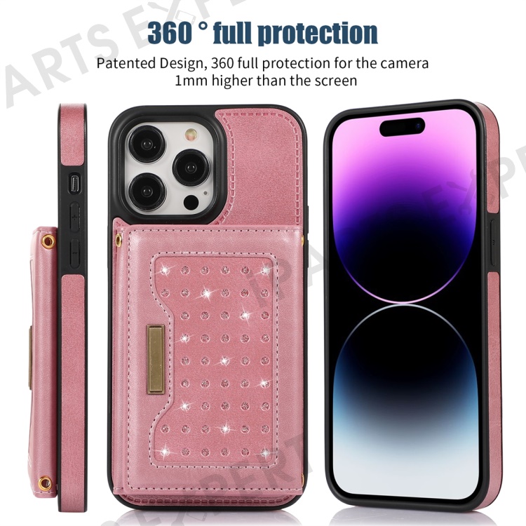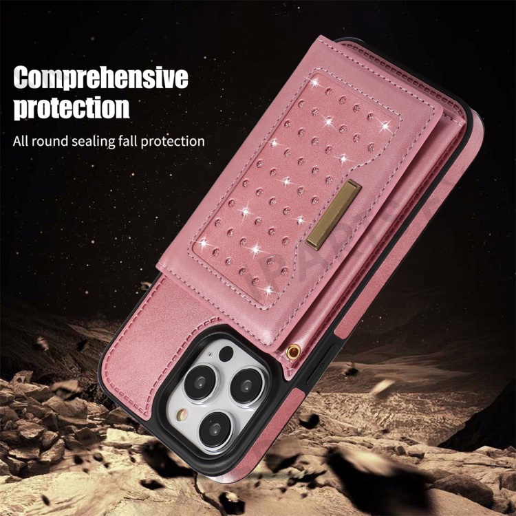 - Stylish Wallet Design: Featuring a wallet design decorated with rhinestones, it includes multiple card slots for easy carrying of cash, ID, or bank cards, providing convenience and style
