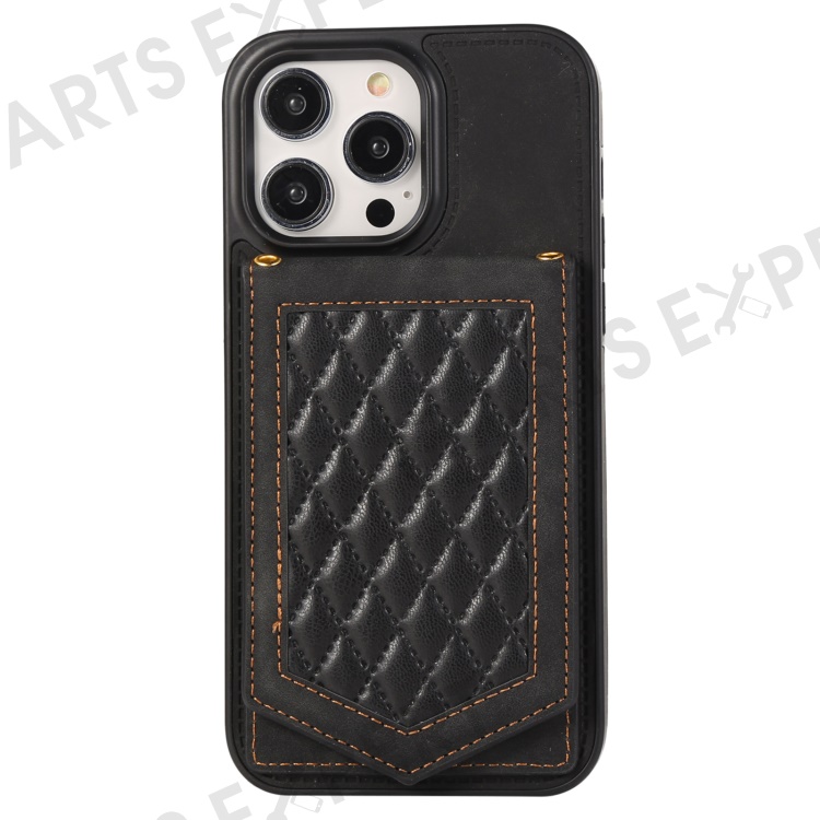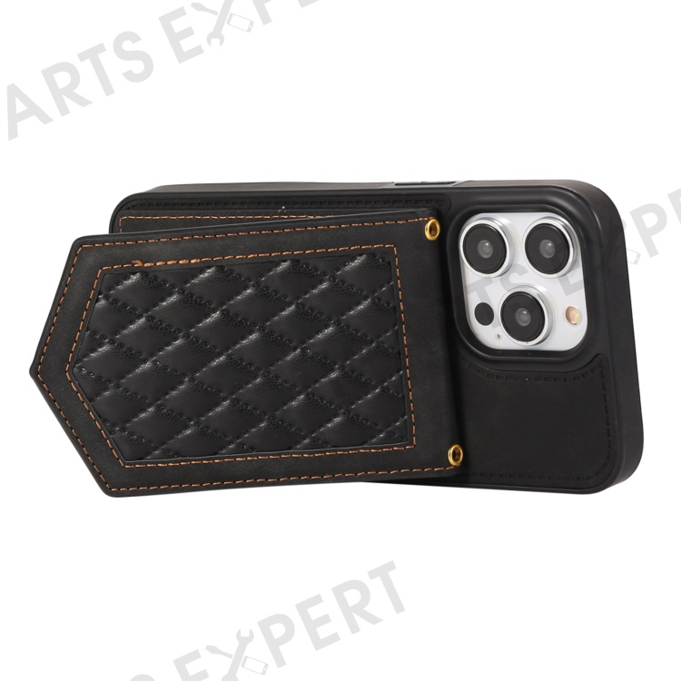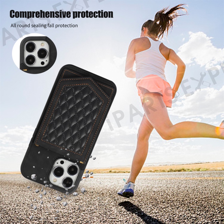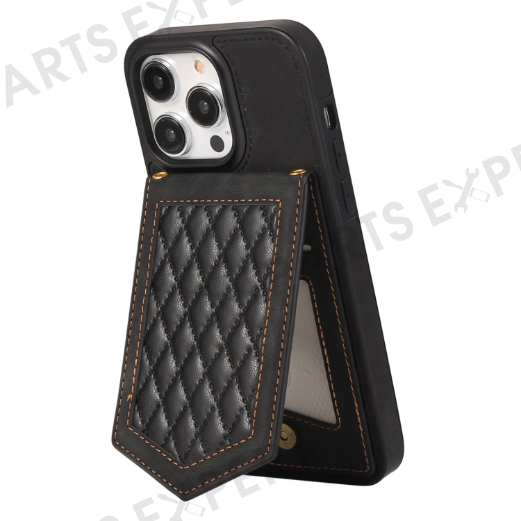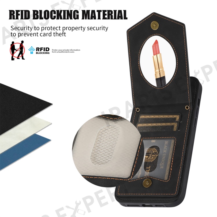 For iPhone 16 Pro Cover TPU Leather Phone Case RFID Blocking Hidden Mirror - Black
