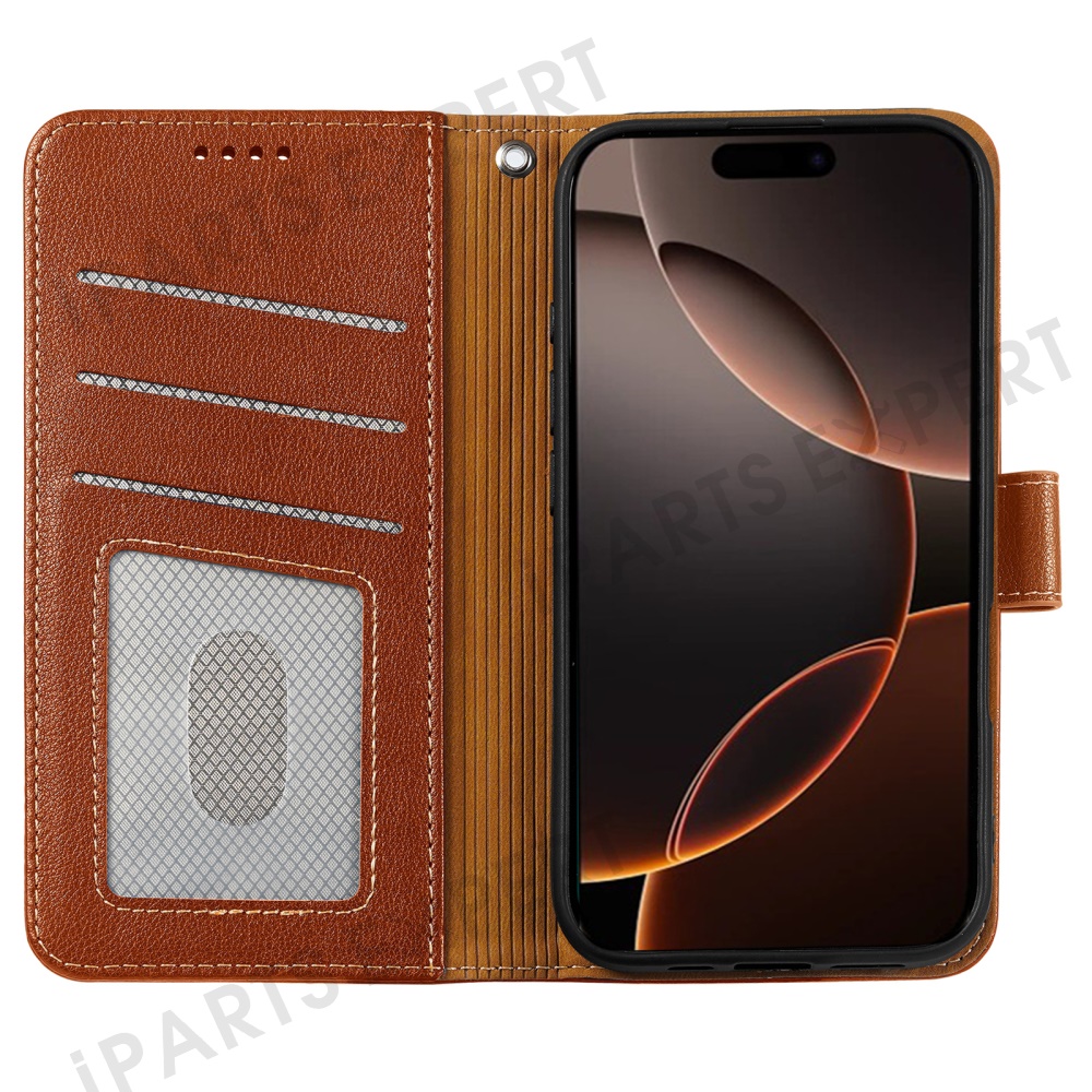 For iPhone 16 Pro Leather Case Litchi Texture Wallet RFID Blocking Phone Cover - Brown