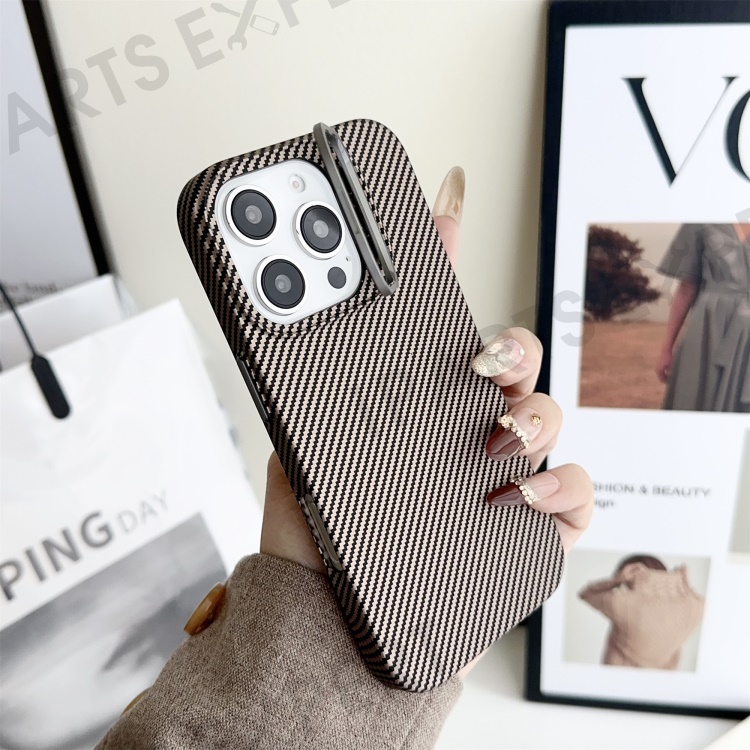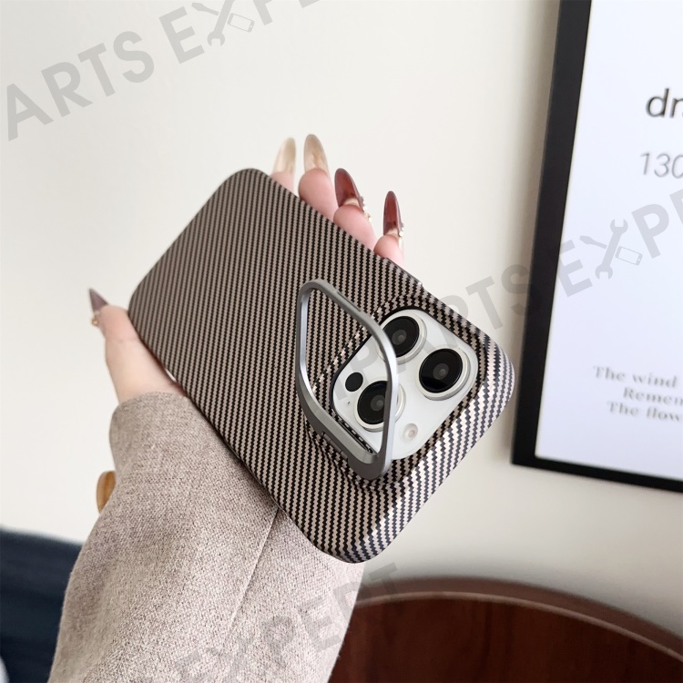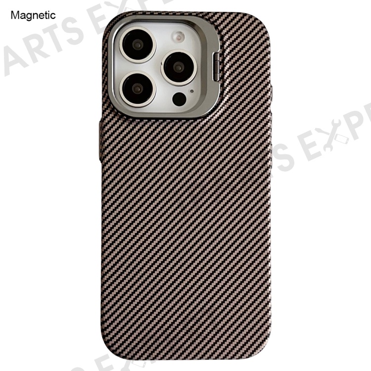 For iPhone 16 Pro Magnetic Case 600D Fine Carbon Fiber Texture Kickstand Phone Back Cover - Brown
