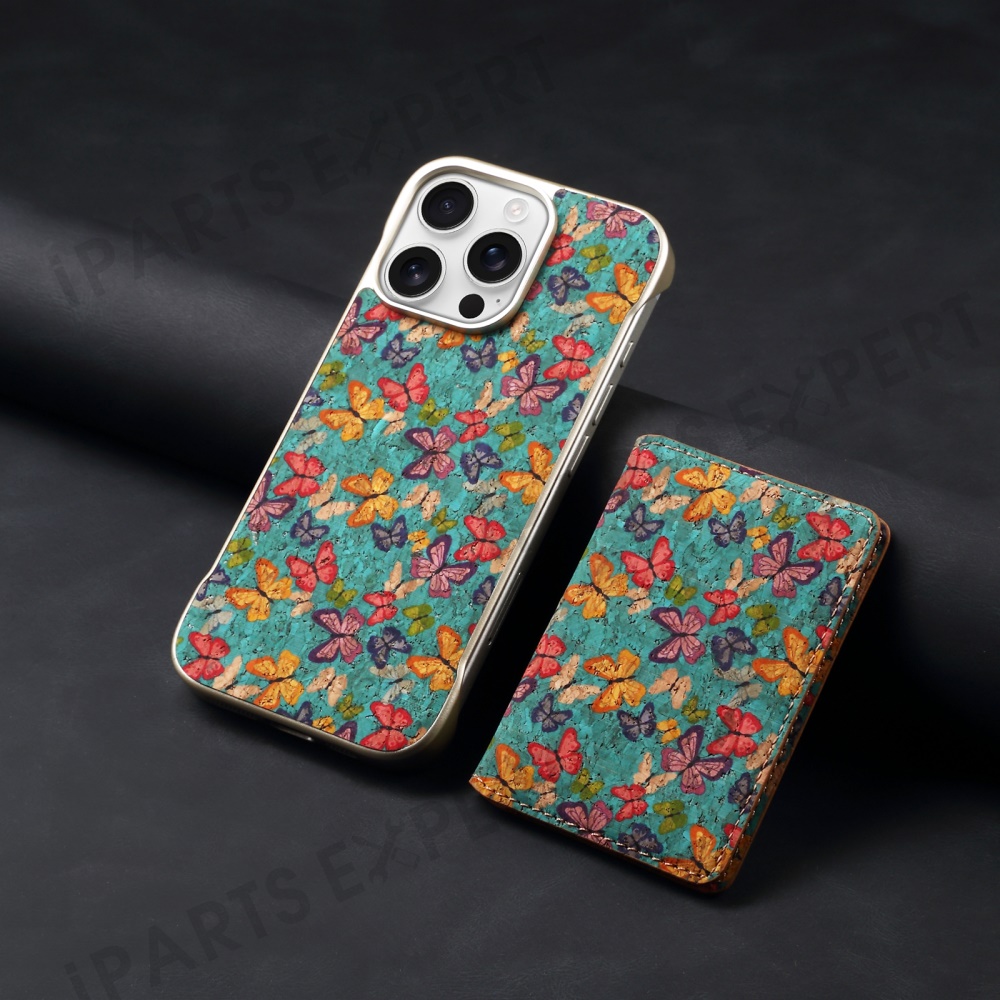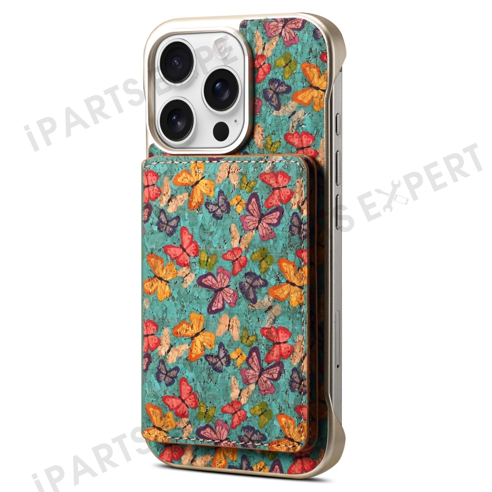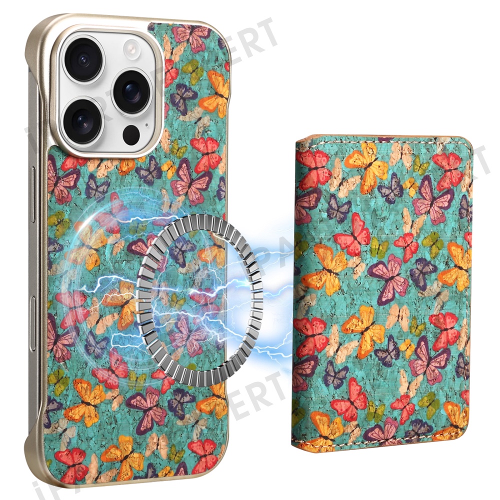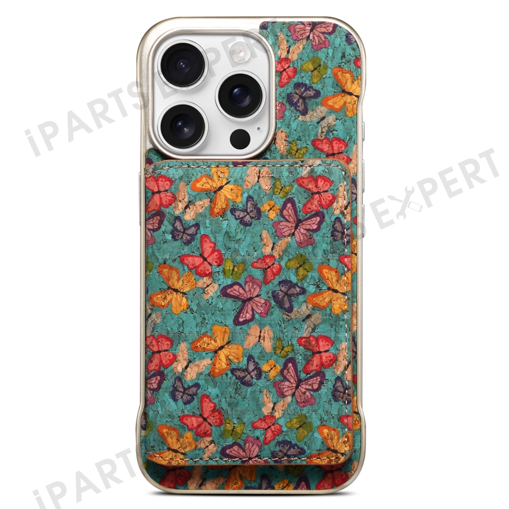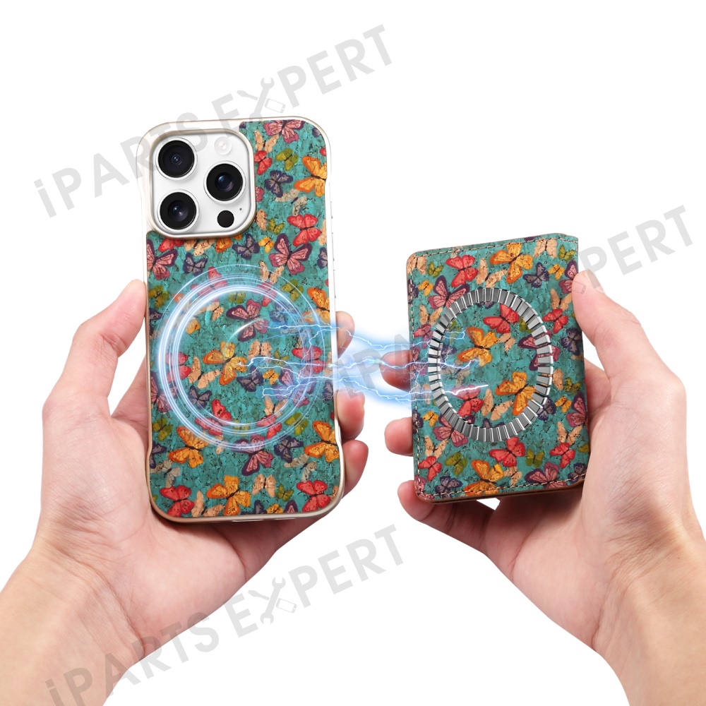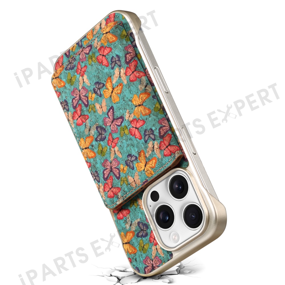 For iPhone 16 Pro Magnetic Case Compatible with MagSafe Pattern Print PU + PC Phone Cover with Card Holder - Butterfly Blue