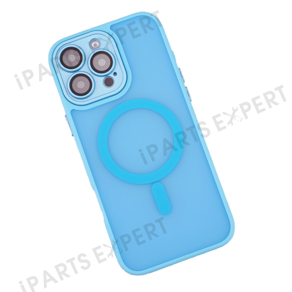For iPhone 16 Pro Magnetic Case with Lens Film / Detachable Lens Frame Hybrid Phone Back Cover - Blue
