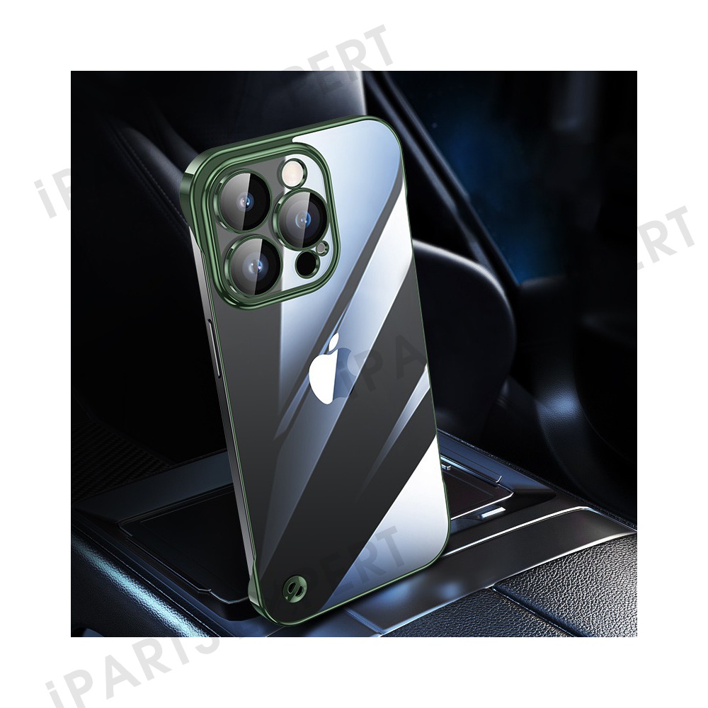 For iPhone 16 Pro Max Case Borderless Electroplated Ultra Thin PC Phone Cover with Glass Lens Film - Green