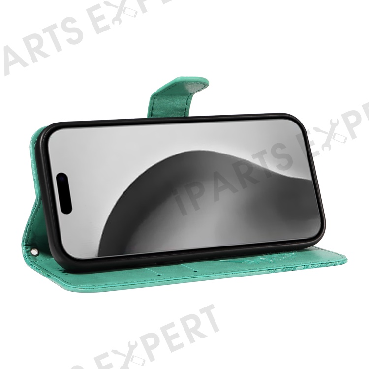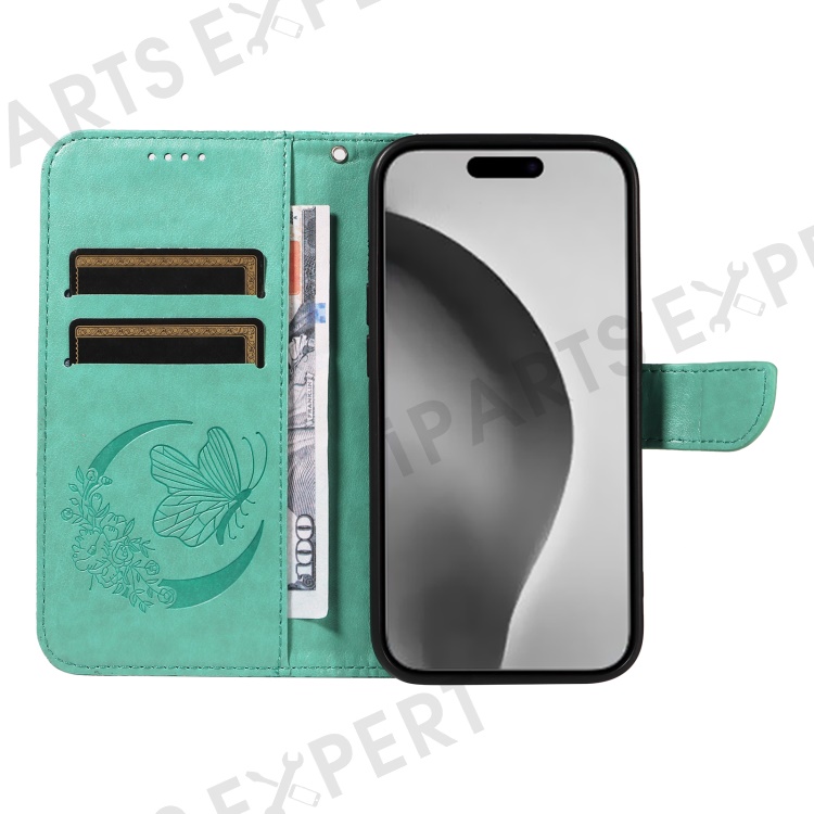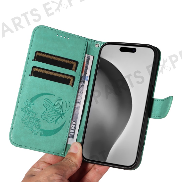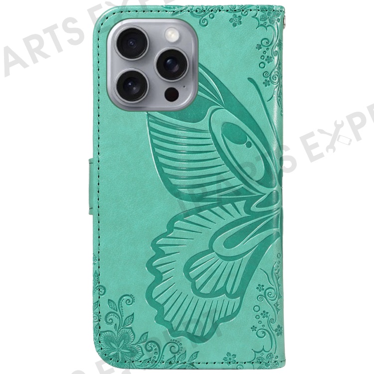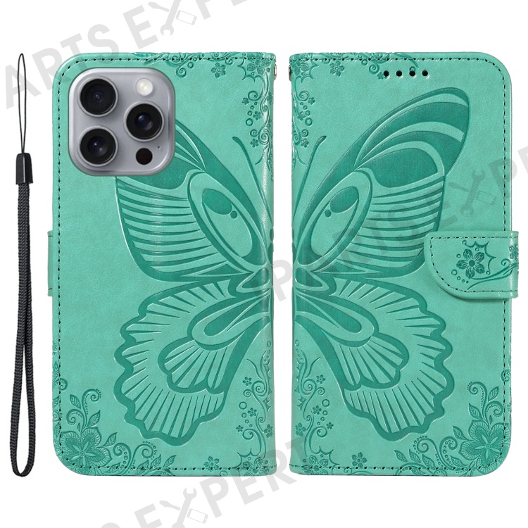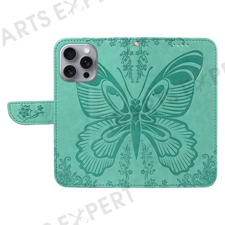 For iPhone 16 Pro Max Case Butterfly Imprint Anti-Shock Leather Phone Cover - Green