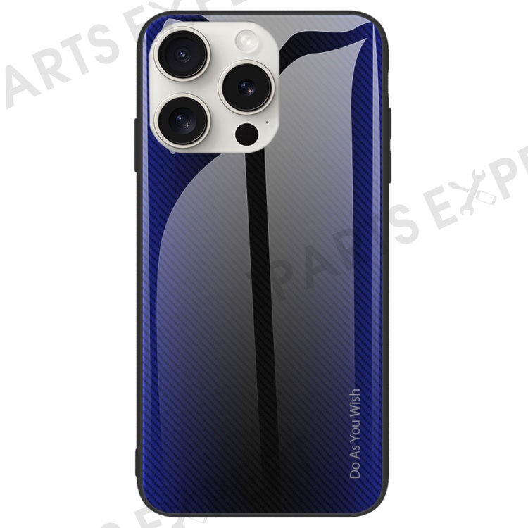 For iPhone 16 Pro Max Case Carbon Fiber Texture Tempered Glass+TPU Phone Cover - Dark Blue