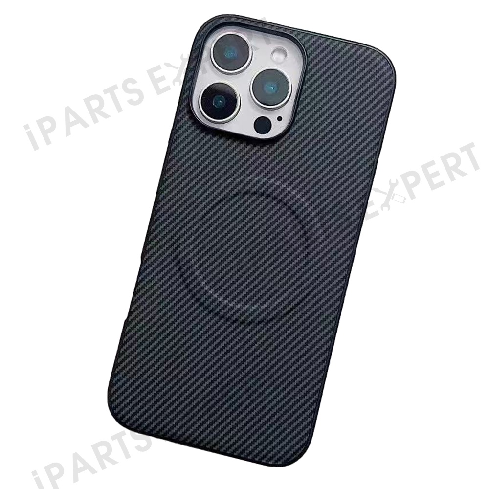 For iPhone 16 Pro Max Case Compatible with MagSafe Carbon Fiber Texture Leather + PC Phone Cover - Black