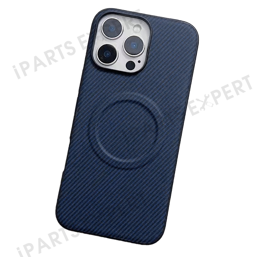 For iPhone 16 Pro Max Case Compatible with MagSafe Carbon Fiber Texture Leather + PC Phone Cover - Blue