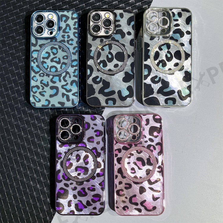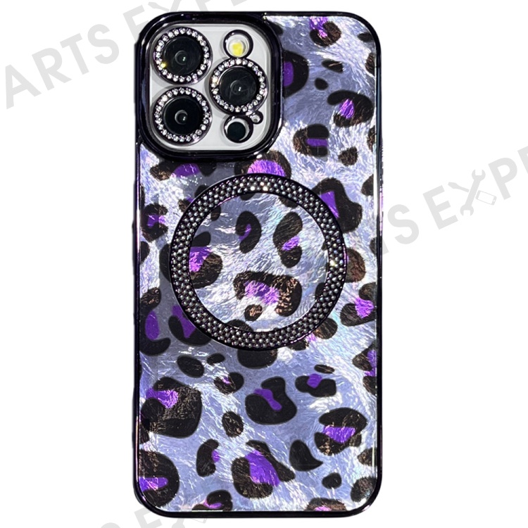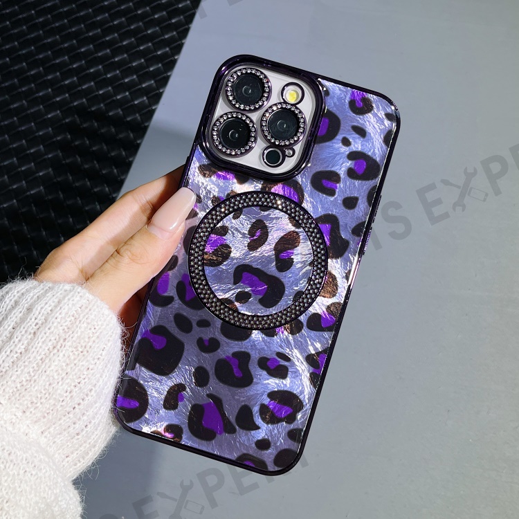 For iPhone 16 Pro Max Case Compatible with MagSafe Epoxy Shockproof Phone Cover Leopard Print - Purple