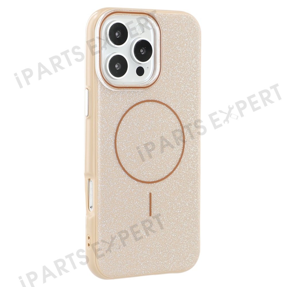 For iPhone 16 Pro Max Case Compatible with MagSafe Glitter Design IMD TPU + PC Phone Back Cover - Desert Gold