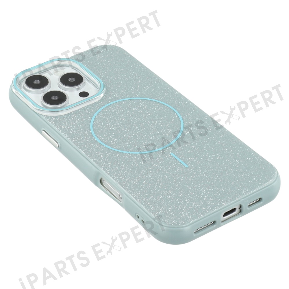 For iPhone 16 Pro Max Case Compatible with MagSafe Glitter Design IMD TPU + PC Phone Back Cover - Green