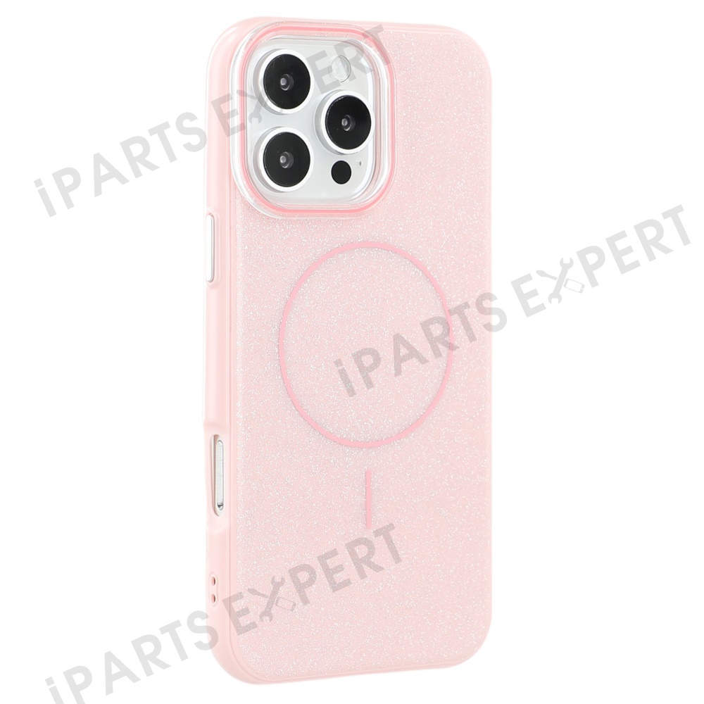For iPhone 16 Pro Max Case Compatible with MagSafe Glitter Design IMD TPU + PC Phone Back Cover - Pink