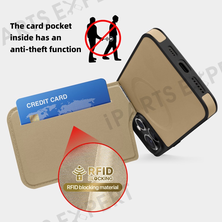 For iPhone 16 Pro Max Case Compatible with MagSafe RFID Blocking Card Slot Leather Back Cover - Gold