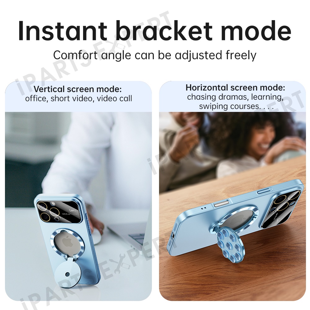 - 【Suction Cup Kickstand】 allows you to easily place your phone on a flat desktop or attach it securely to smooth wall surfaces for hands-free viewing.