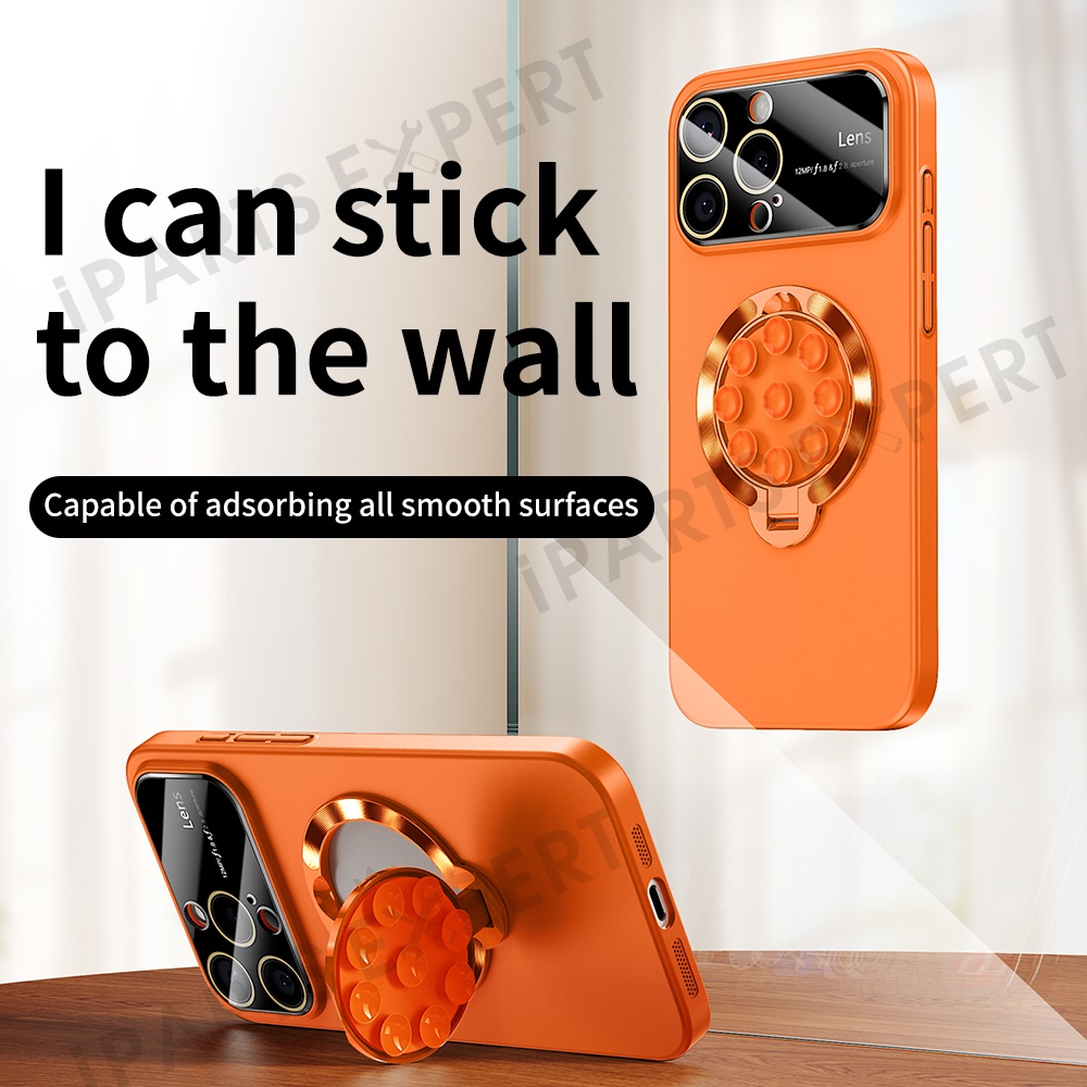 - 【Suction Cup Kickstand】 allows you to easily place your phone on a flat desktop or attach it securely to smooth wall surfaces for hands-free viewing.