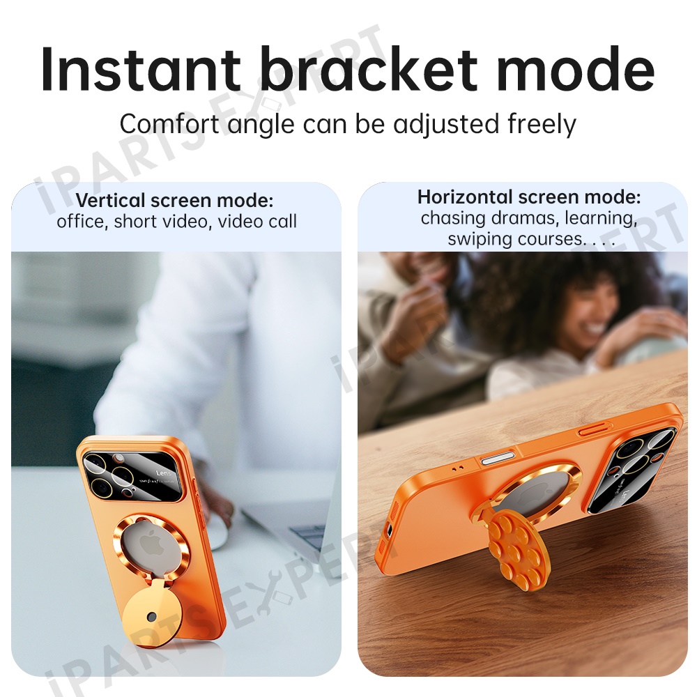 For iPhone 16 Pro Max Case Compatible with MagSafe Suction Cup Kickstand PC Phone Cover - Orange