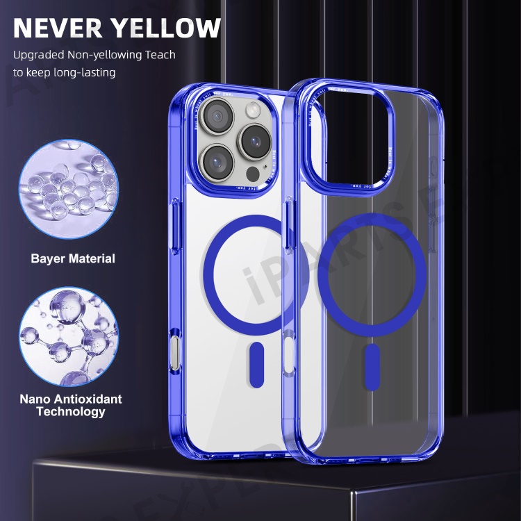 For iPhone 16 Pro Max Case Compatible with MagSafe TPU+PC Transparent Phone Cover - Blue