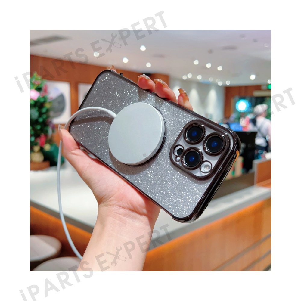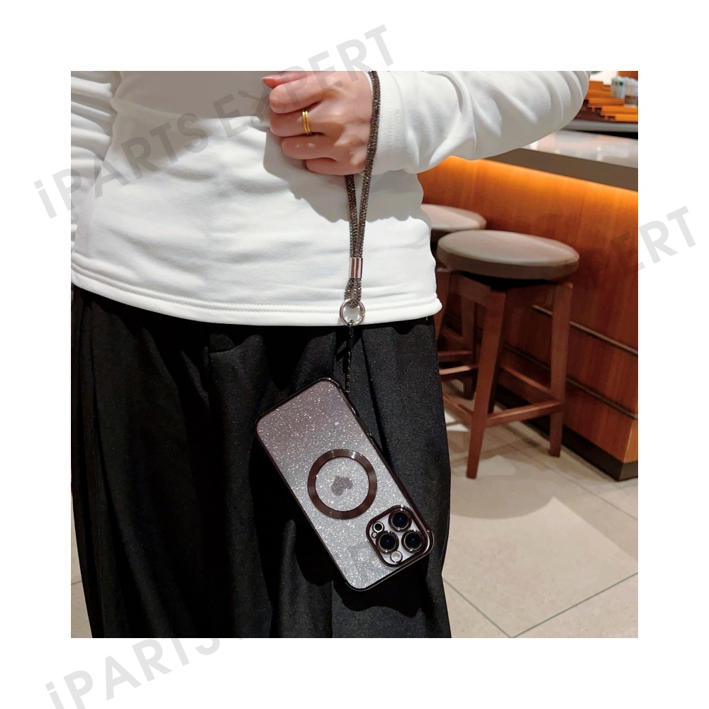 For iPhone 16 Pro Max Case Compatible with MagSafe TPU Phone Cover with Strap Heart Gradient Sparkle - Black