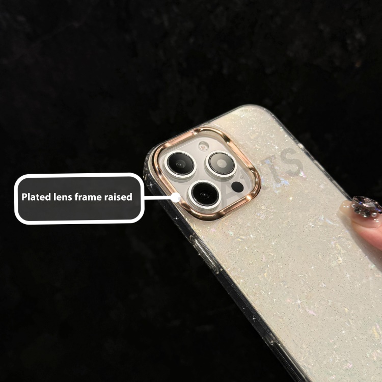 - 【Shell Pattern Design】A unique IMD shell pattern with glitter accents, and an electroplating camera ring creates a stunning visual effect reminiscent of a starry sky