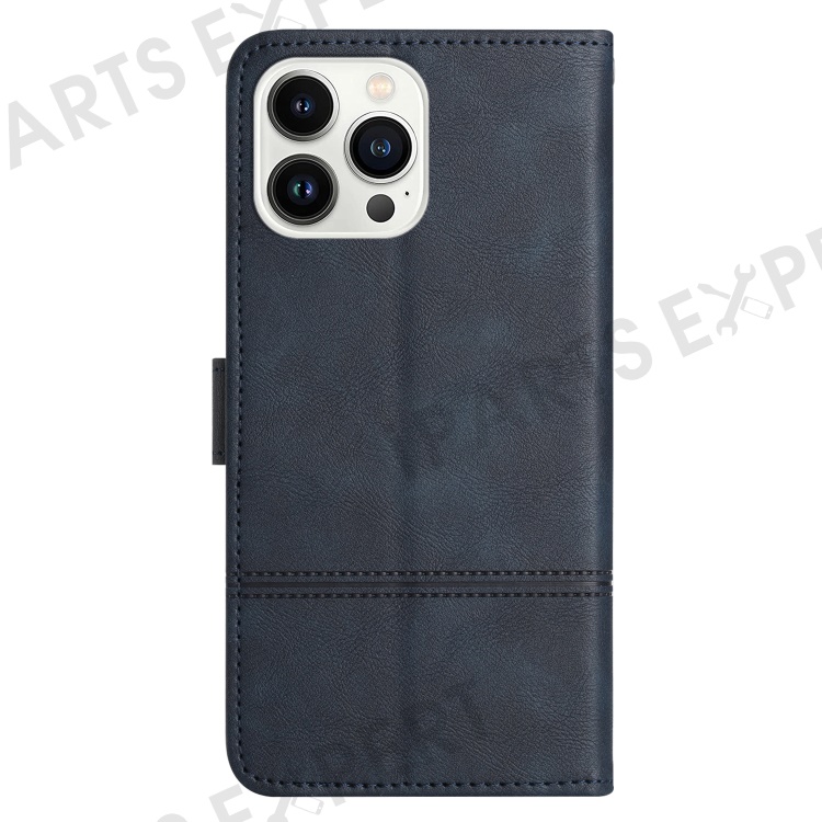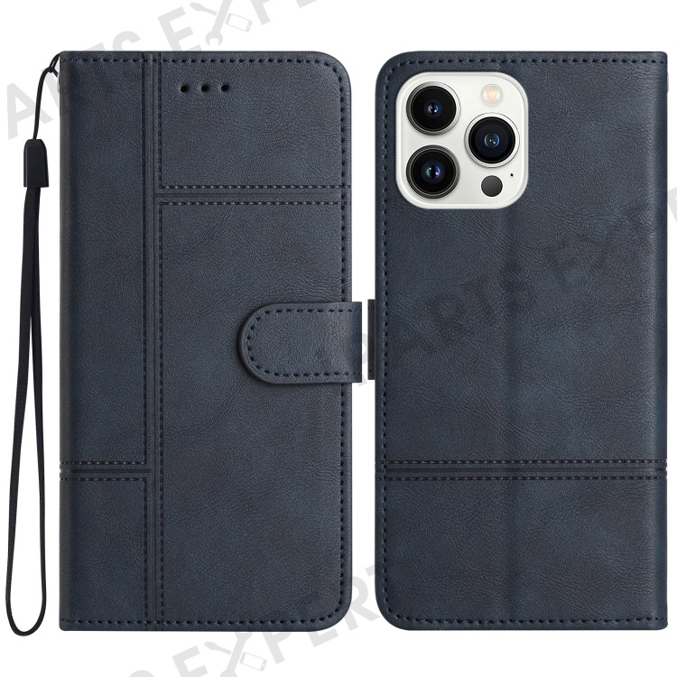 For iPhone 16 Pro Max Case Line Imprinted PU Leather Wallet Phone Cover - Blue