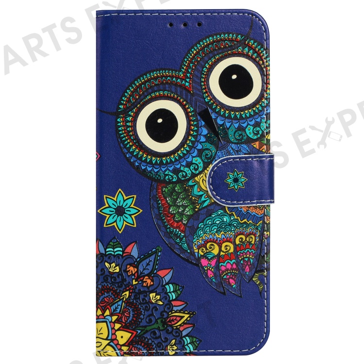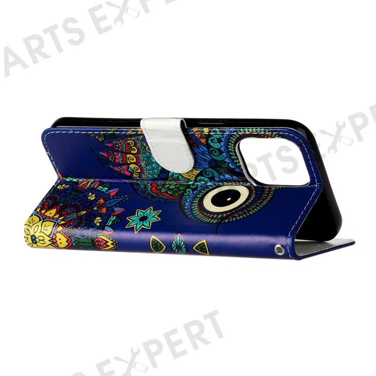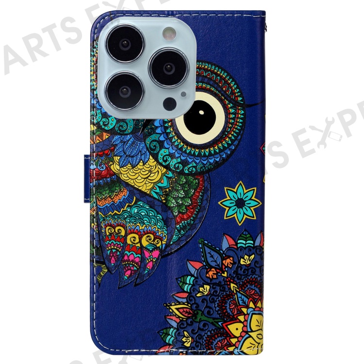 For iPhone 16 Pro Max Case Pattern Printed Leather Phone Cover with Stand 3 Card Holder - Blue Owl