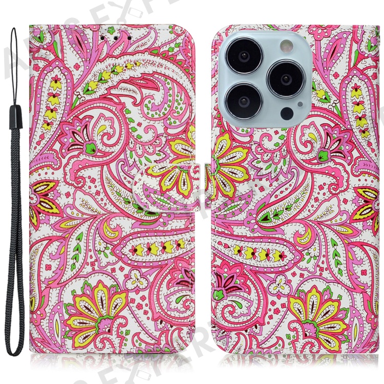 For iPhone 16 Pro Max Case Pattern Printed Leather Phone Cover with Stand 3 Card Holder - Flower
