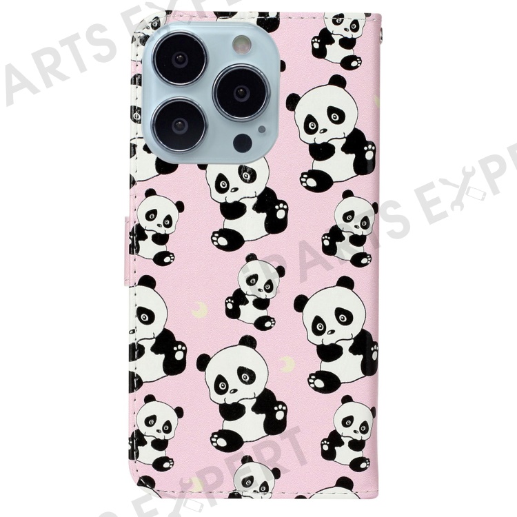 For iPhone 16 Pro Max Case Pattern Printed Leather Phone Cover with Stand 3 Card Holder - Panda