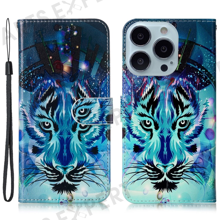 For iPhone 16 Pro Max Case Pattern Printed Leather Phone Cover with Stand 3 Card Holder - Wolf
