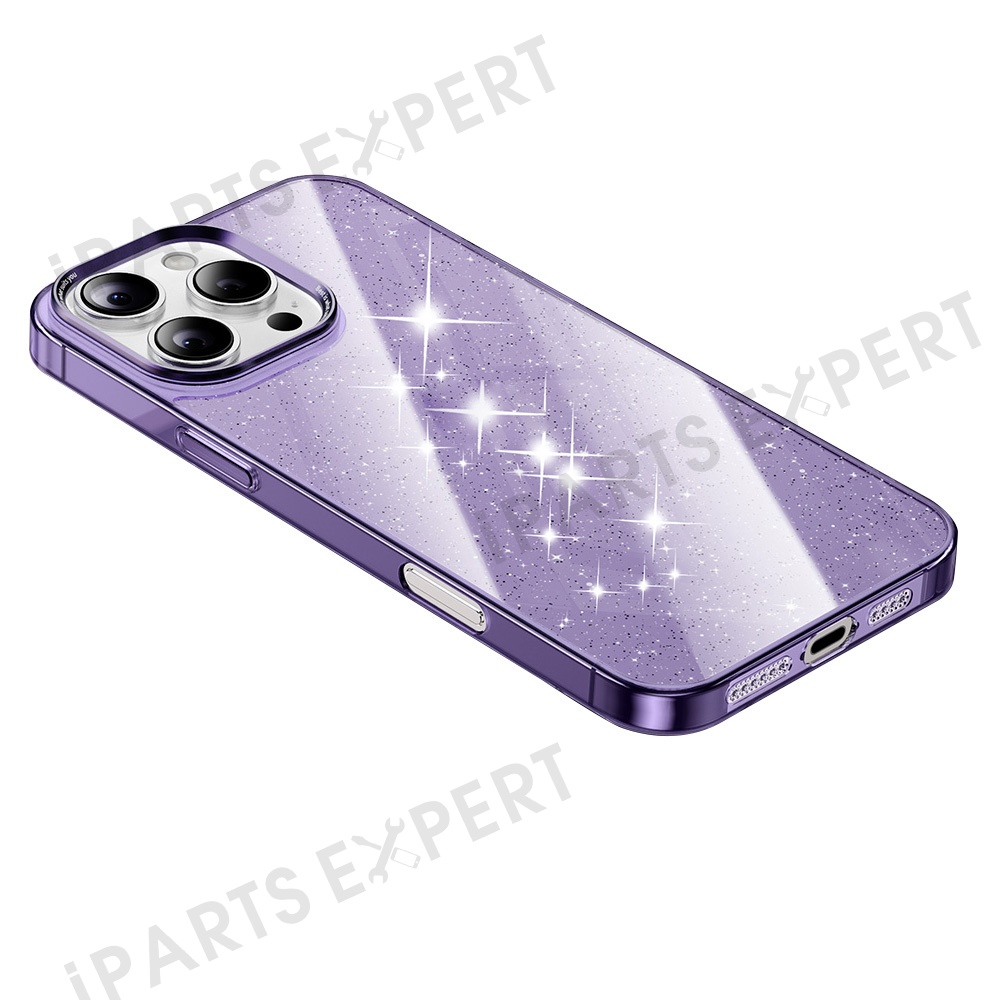 For iPhone 16 Pro Max Case PC + Glitter Glass Protective Phone Cover - Transparent Purple