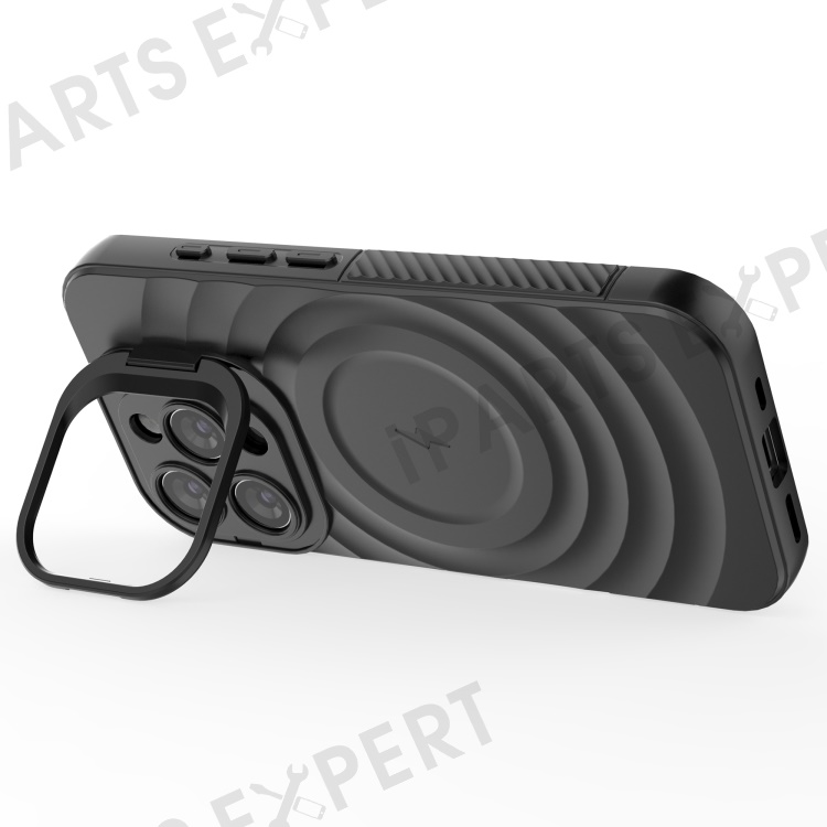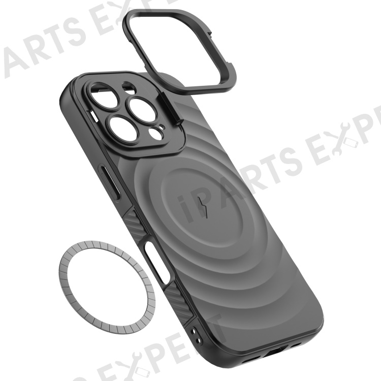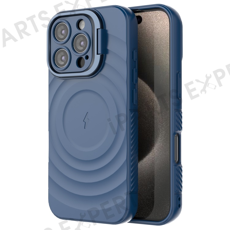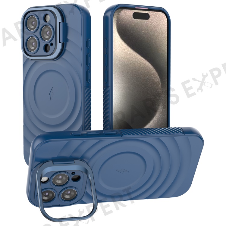 For iPhone 16 Pro Max Case PC Kickstand Ripple Texture TPU Phone Cover Compatible with MagSafe - Blue