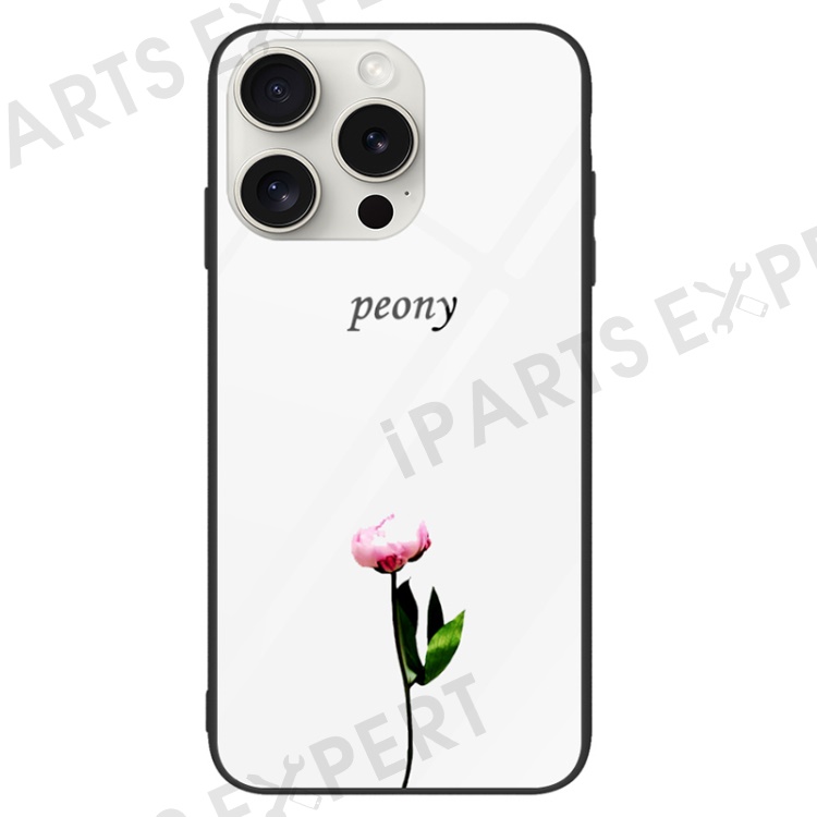 For iPhone 16 Pro Max Case Tempered Glass+PC+TPU Phone Protector Pattern Printing - Peony